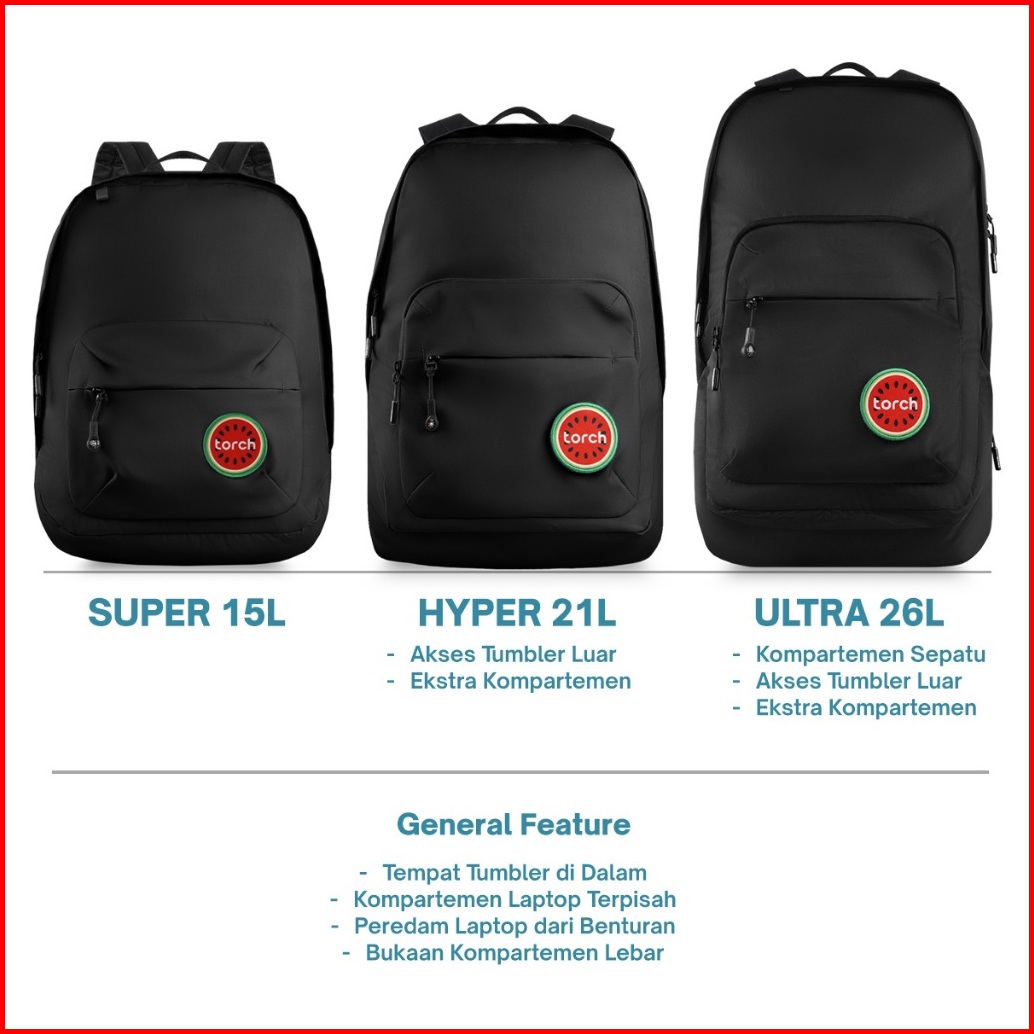 Torch Super 15 Liter Backpack Ransel Sekolah Tas Kerja Laptop Travel Pria Wanita Super Basic