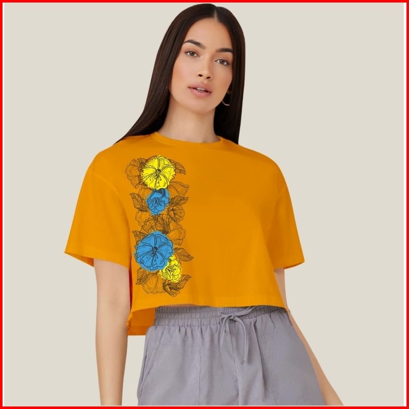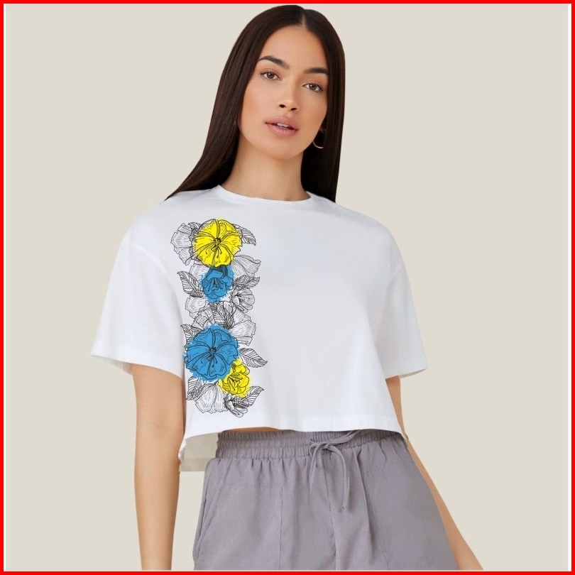 Kaos Crop Wanita Motif 129 Atasan Bahan Cotton Combed