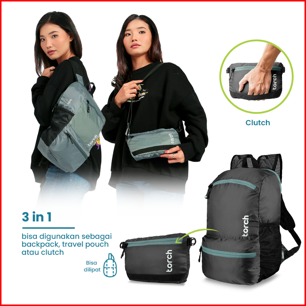 Torch Tata Foldable Backpack Laptop 3 In 1 Tas Outdoor Slingbag Clutch