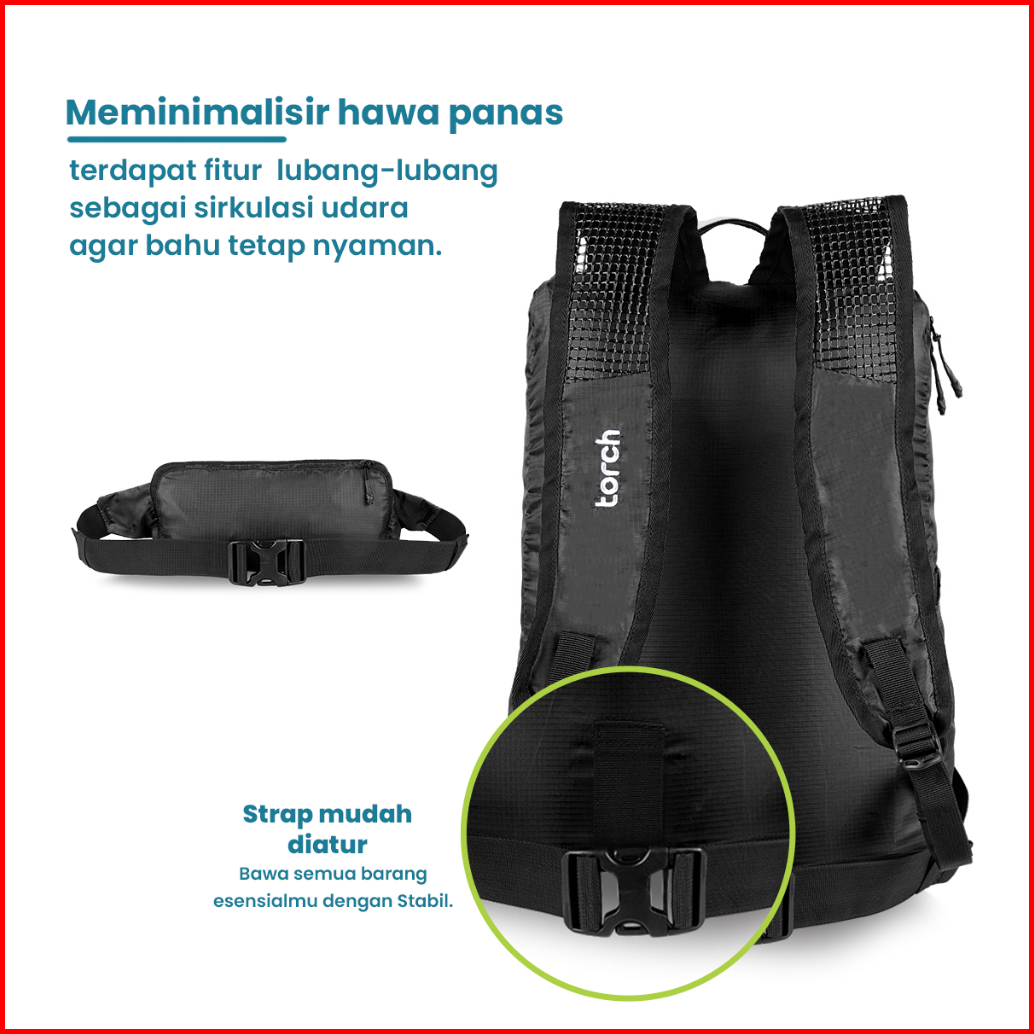 Torch Rampak Foldable Backpack 2 In 1 Tas Outdoor Waistbag Waterproof