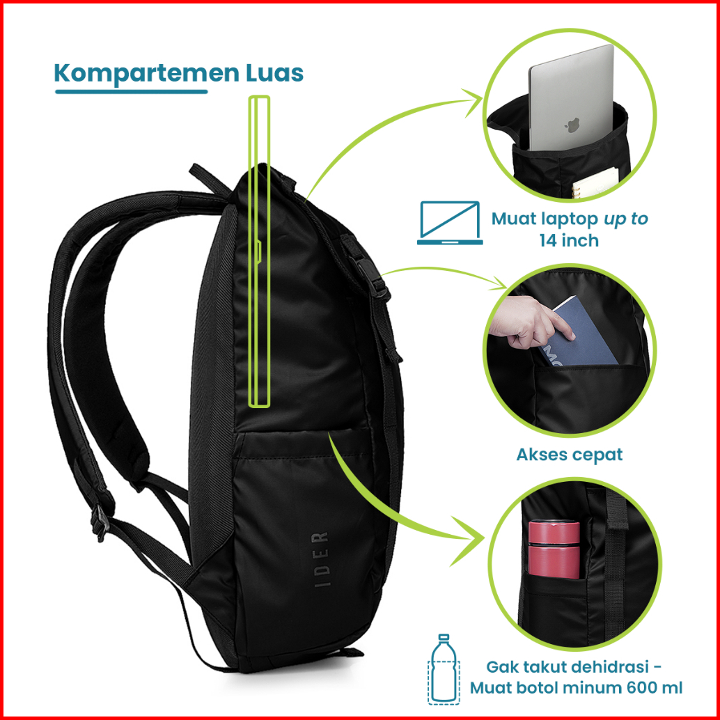 Torch Ider Tas Ransel Punggung Sekolah Kerja Travelling Laptop Pria Wanita Tahan Air 19 Liter - Daily Backpack Water Res