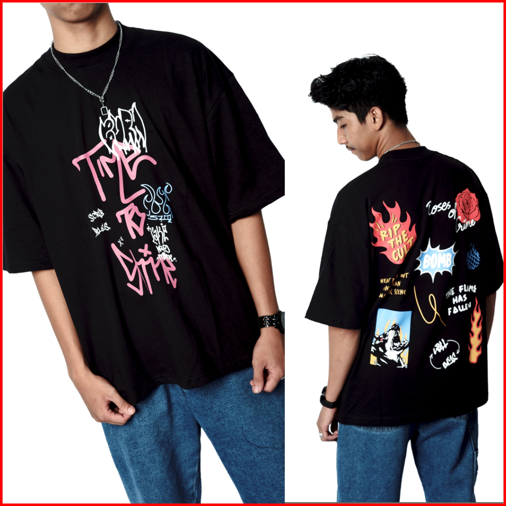 Workout Streetwear Baju Kaos Tshirt Oversize Boxy 16s Pop Cult Hitam