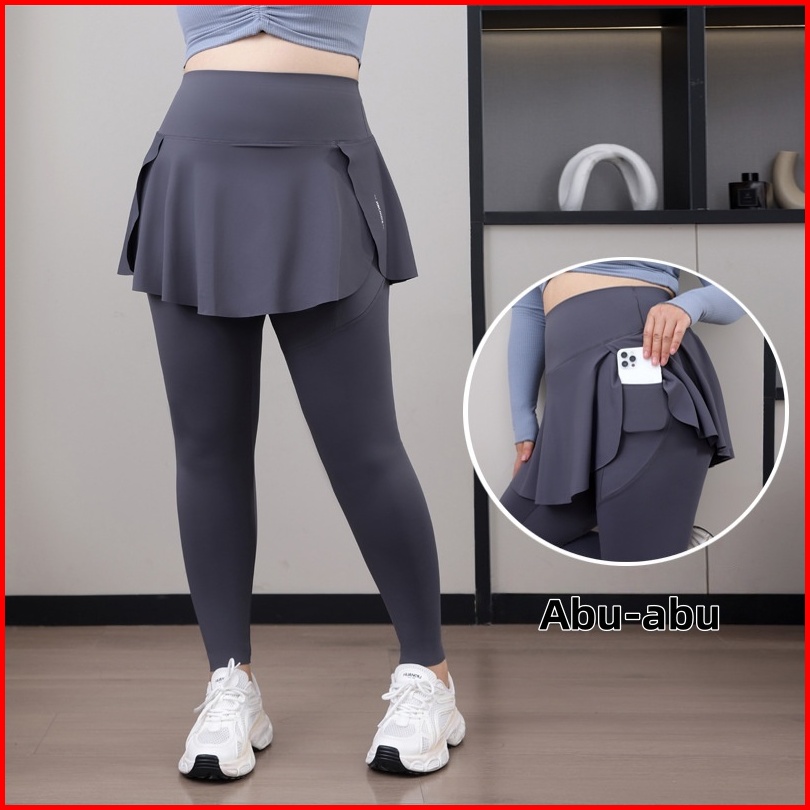 Celana Rok Olahraga Wanita 2 In 1 High Waist Panjang Plus Size Korean Style Legging Rok Muslimah Jumbo Anti Eksposur Nya