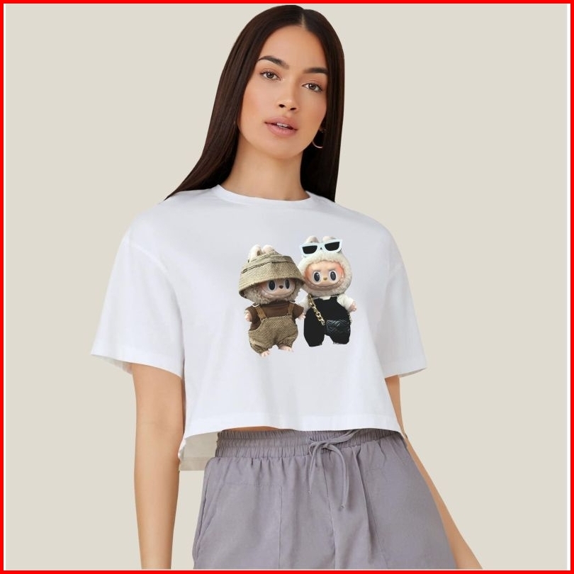 Kaos Crop Gambar Labubu 98 Atasan Wanita Bahan Asli Cotton Combed
