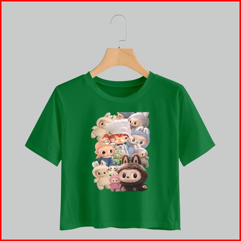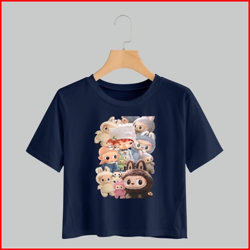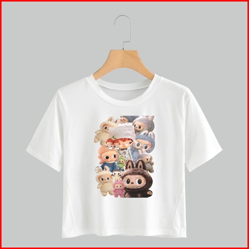 Kaos Crop Gambar Labubu 04 Atasan Wanita Bahan Asli Cotton Combed