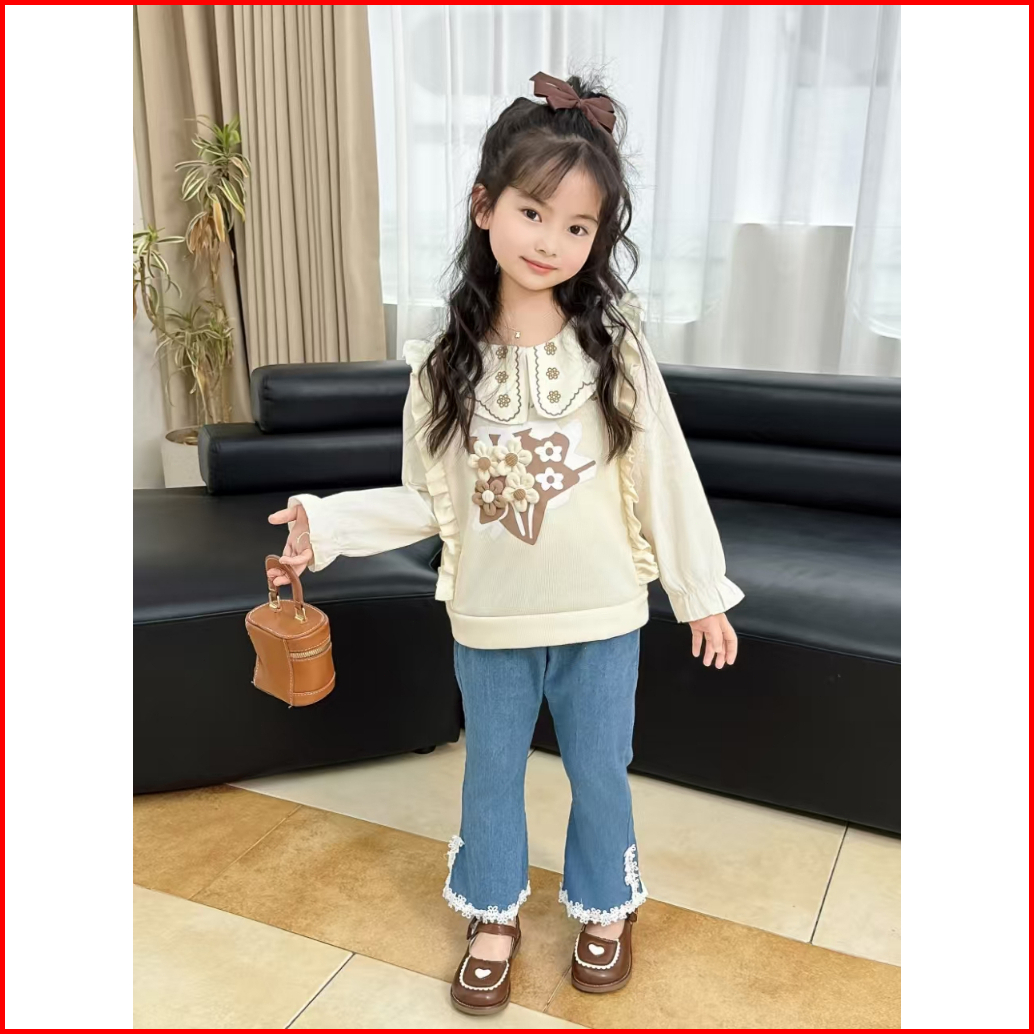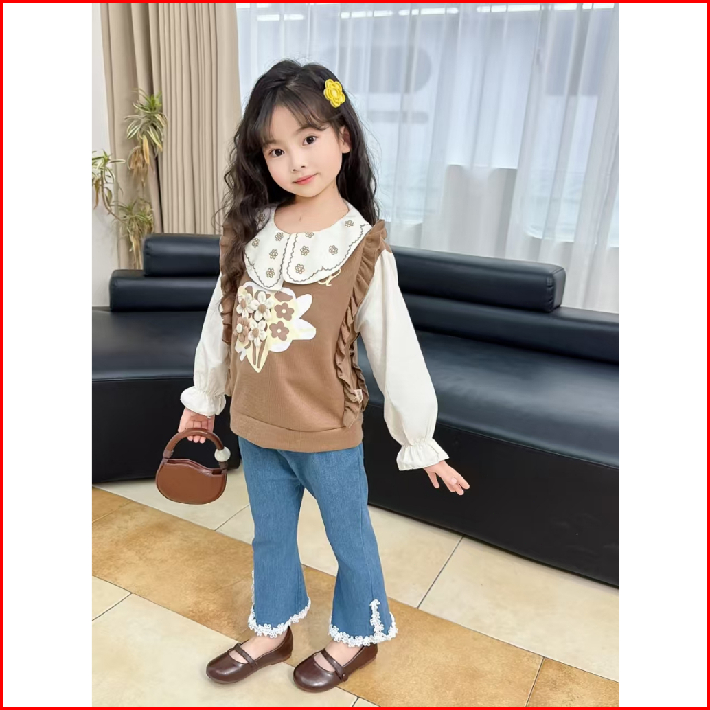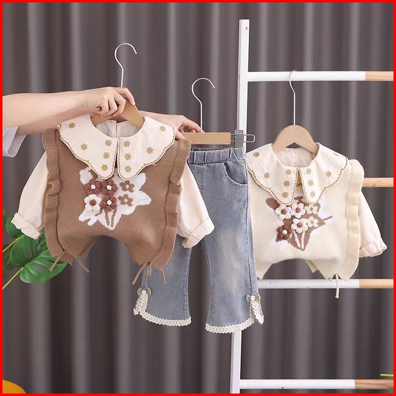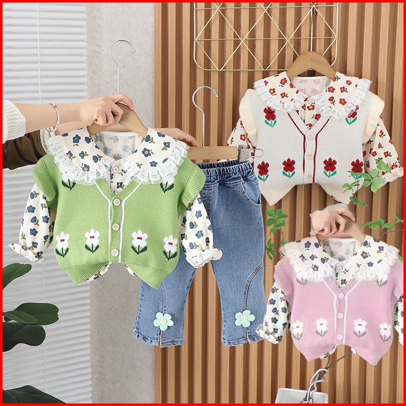Setelan Knit 2 In 1 Kemeja Celana Jeans Anak Perempuan Usia 1-4thn Set Rajut Import Premium