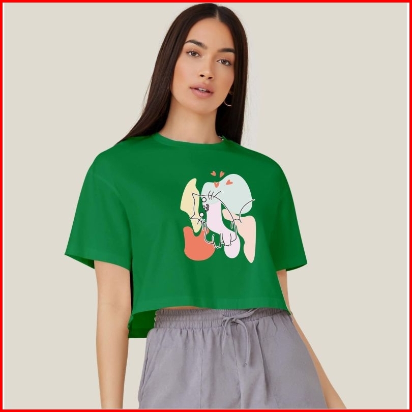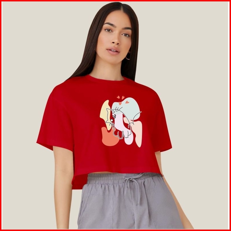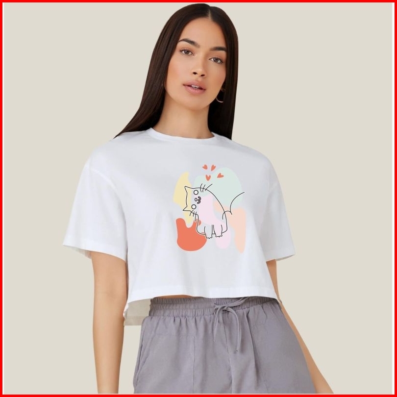 Kaos Crop Wanita Motif 130 Atasan Bahan Cotton Combed
