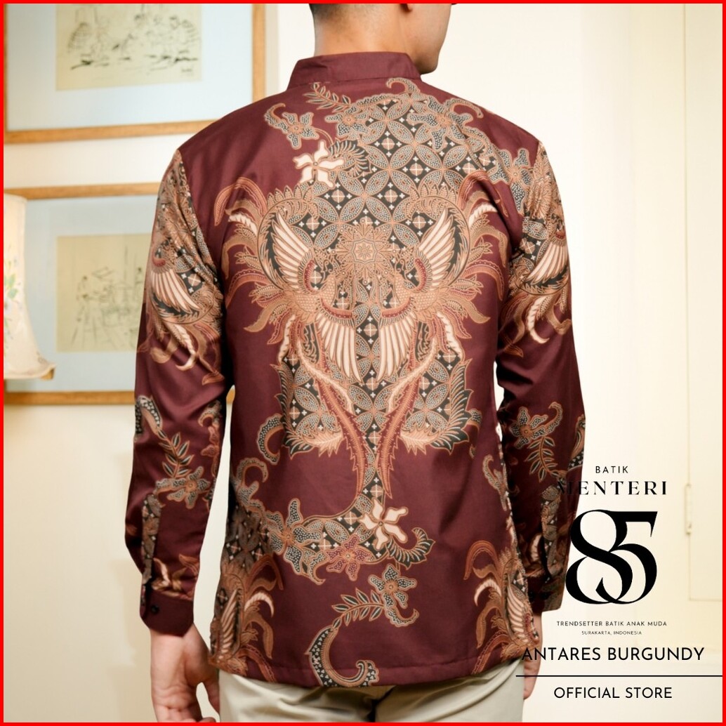Batik Menteri 85 Motif Antares Burgundy Batik Kerja Kondangan Kemeja Batik Slimfit Lapis Furing