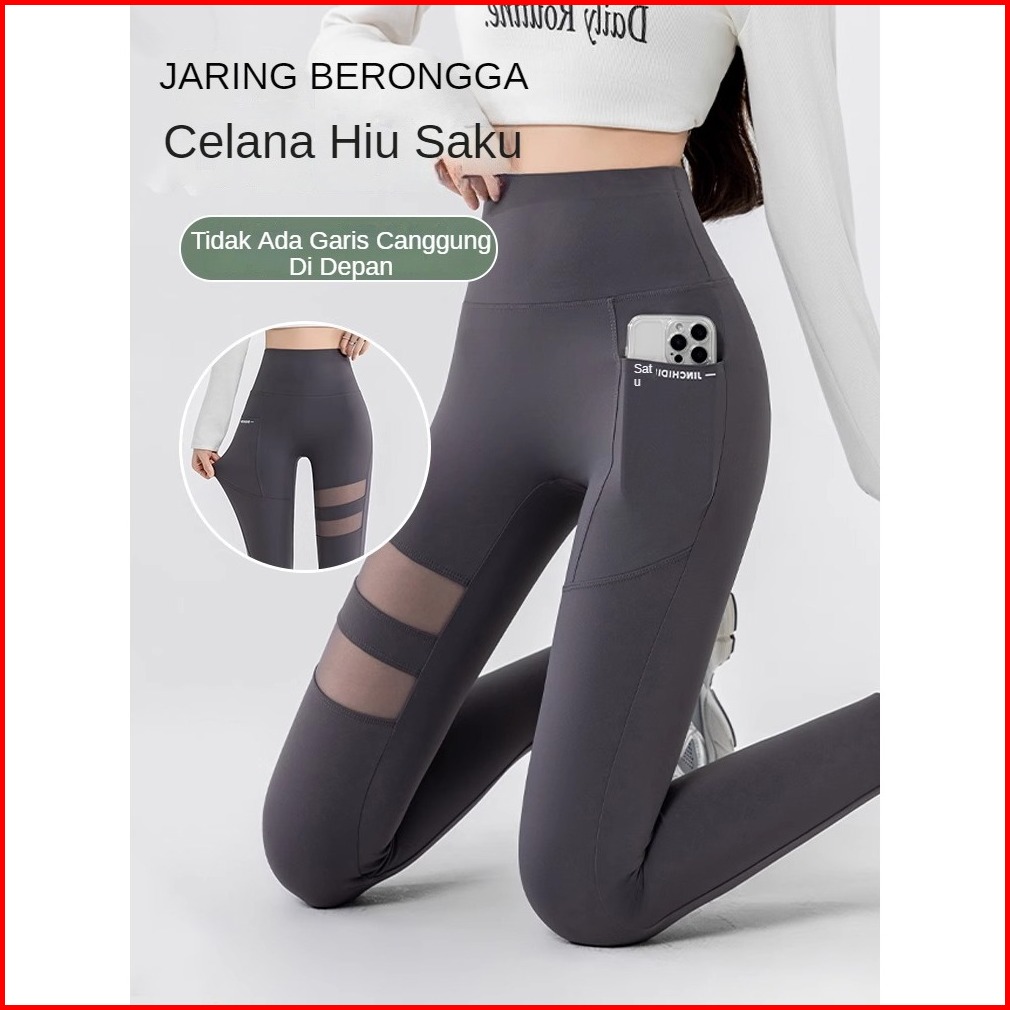Celana Olahraga Wanita Legging Sport Jumbo Pocket Saku Gym Yoga Fitness Zumba Outdoor Highwaist