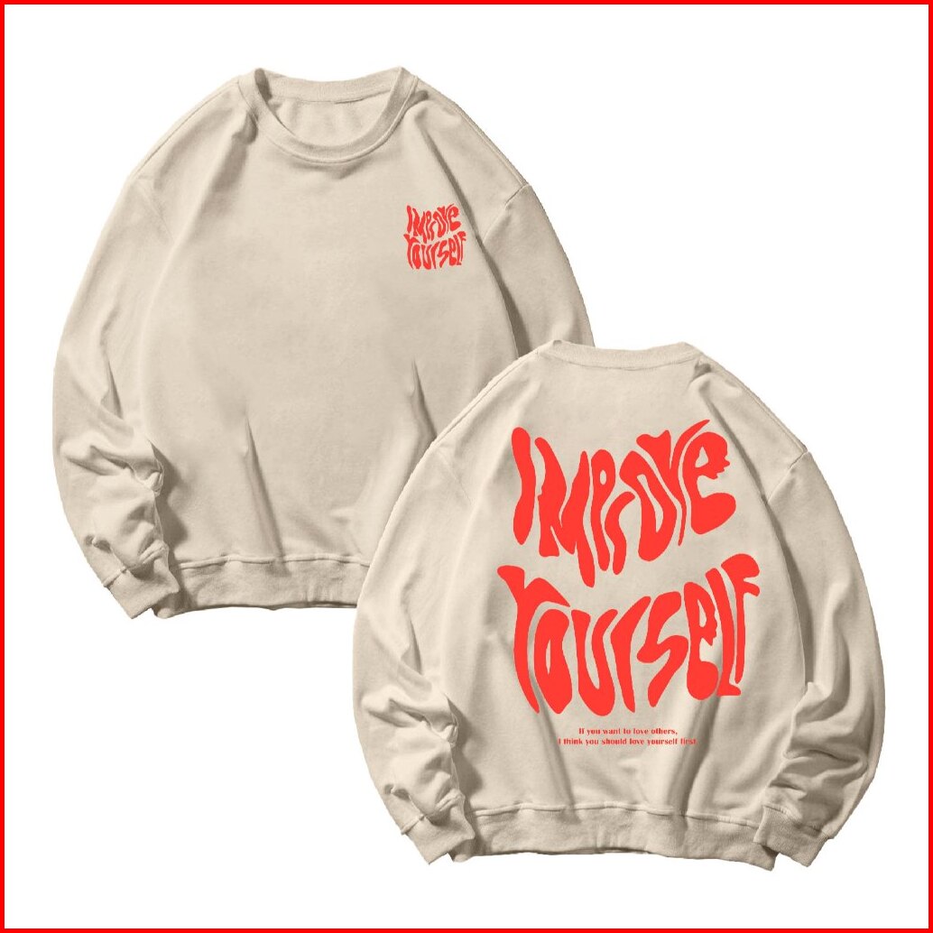 Bunz Basic Sweater Crewneck Long Sleeve Improve Yourself Size M-xxl Pria Wanita
