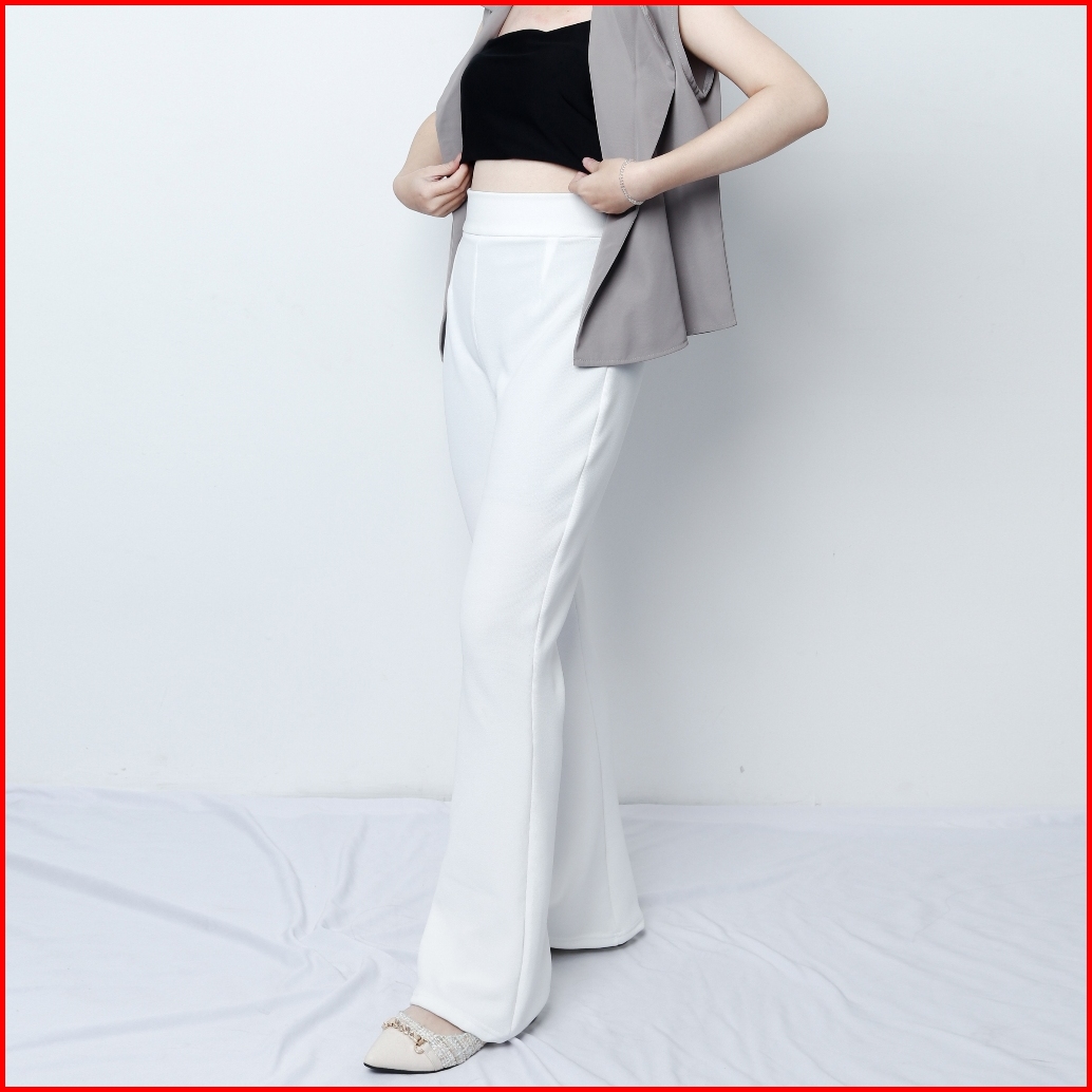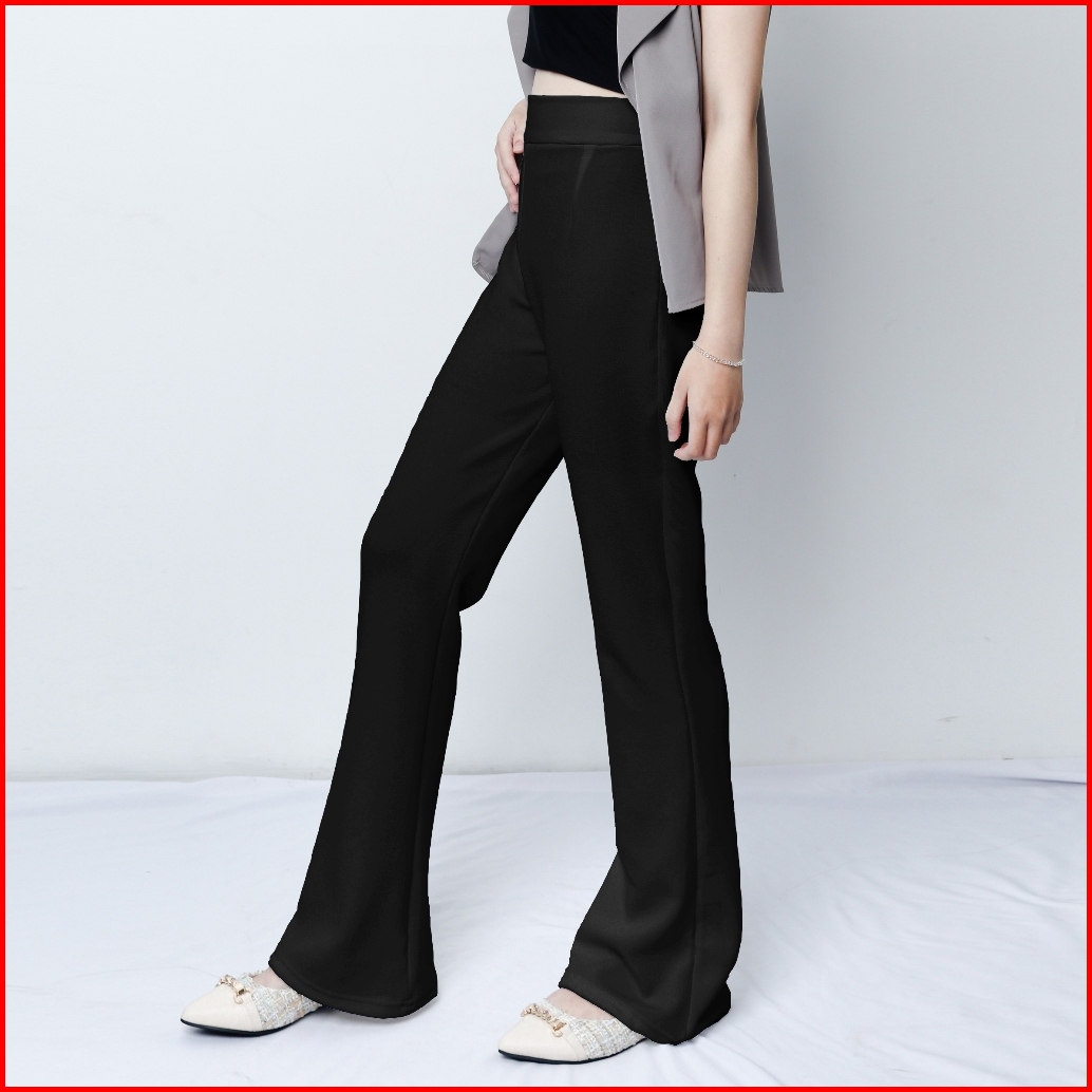 Flare Pants Celana Highwaist Wanita Celana Panjang Knit Model Flare
