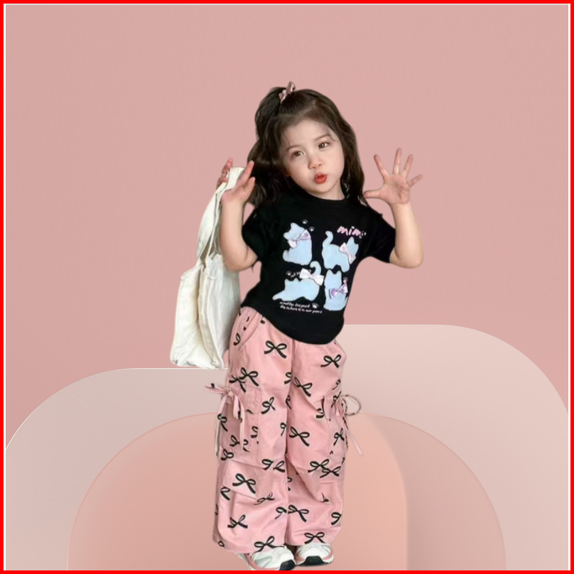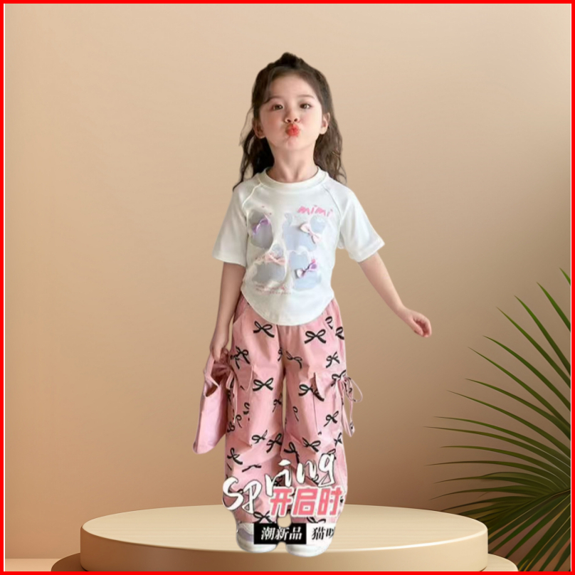 Setelan Baju Lengan Pendek Dan Celana Panjang Anak Perempuan Motif Star Lucu Usia1-5thn