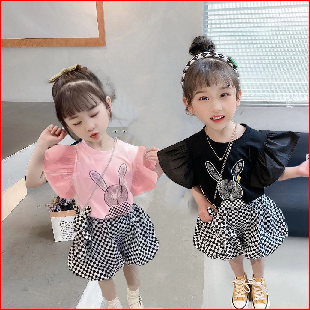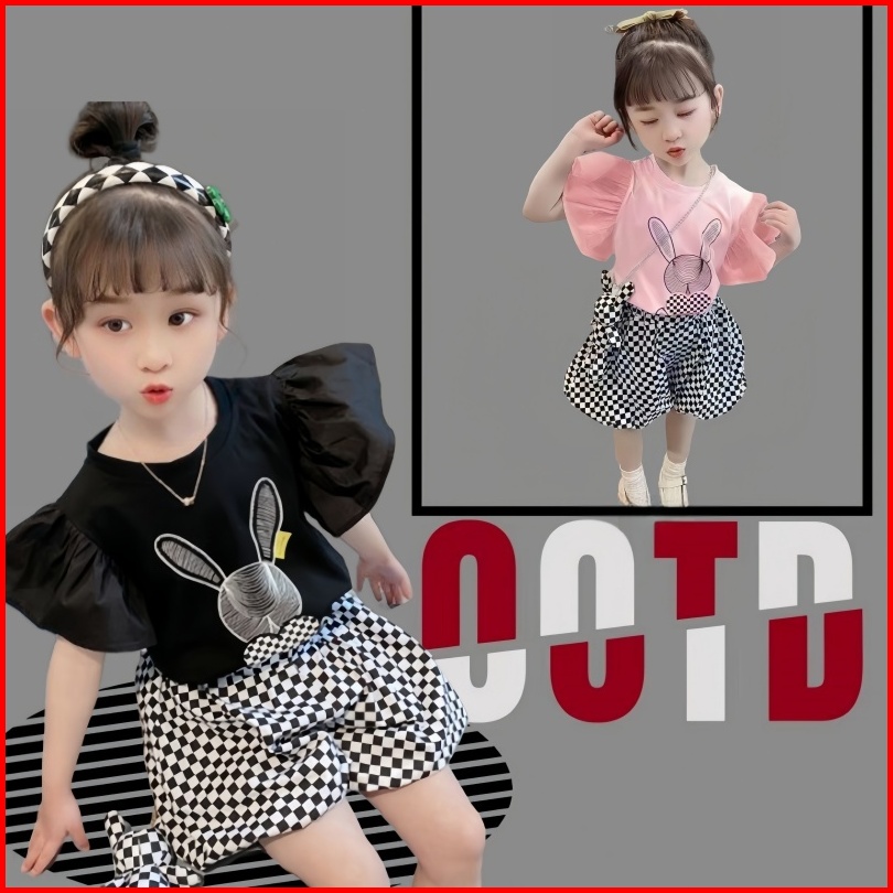 Baju Setelan Anak Perempuan 1-5th Free Tas Boneka Setelan Anak Perempuan One Set Fashion Anak Perempuan Korean Style