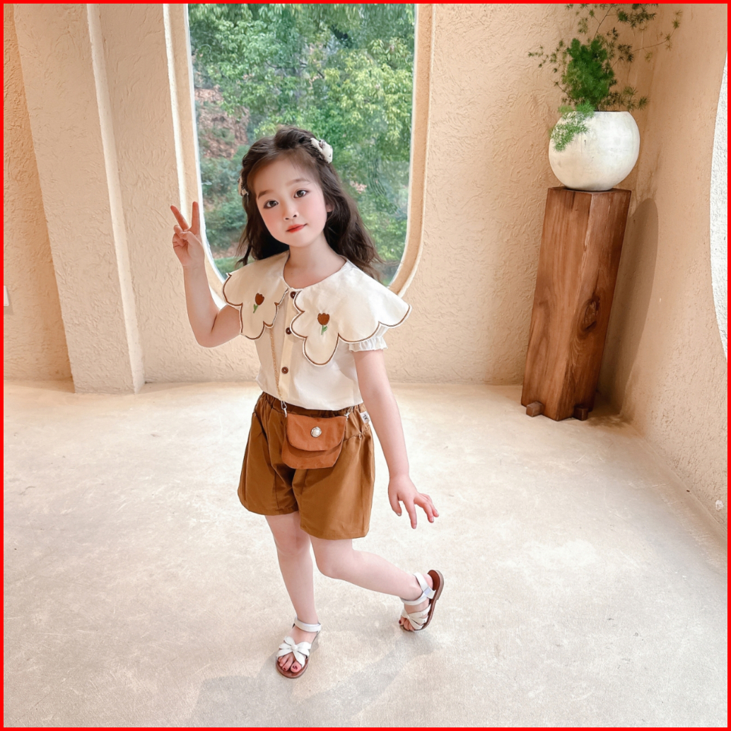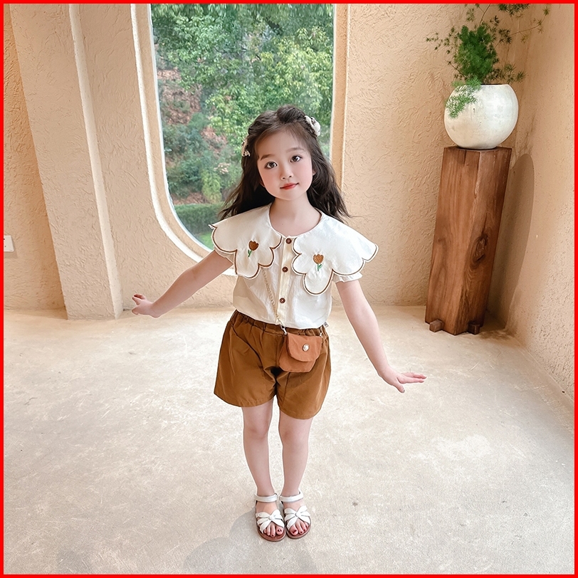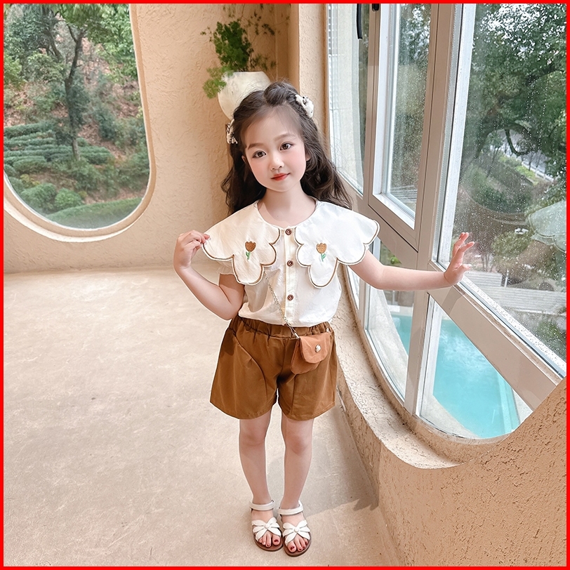 Setelan Korea Anak Perempuan Kemeja Celana Pendek Pilihan Tepat Untuk Musim Panas 1-5 Thn