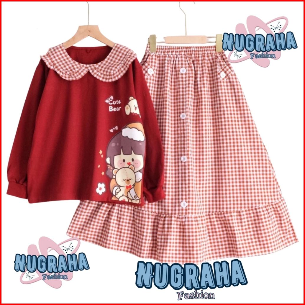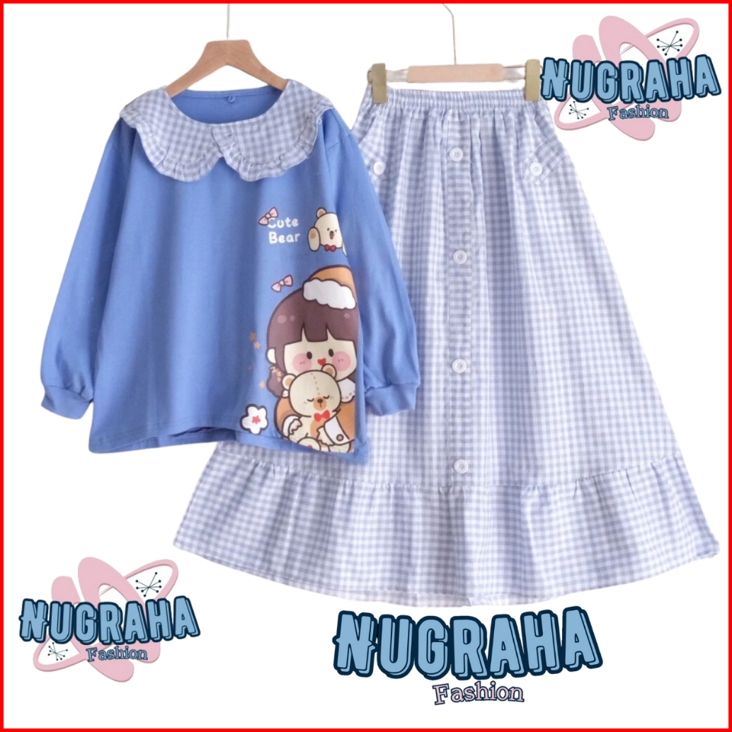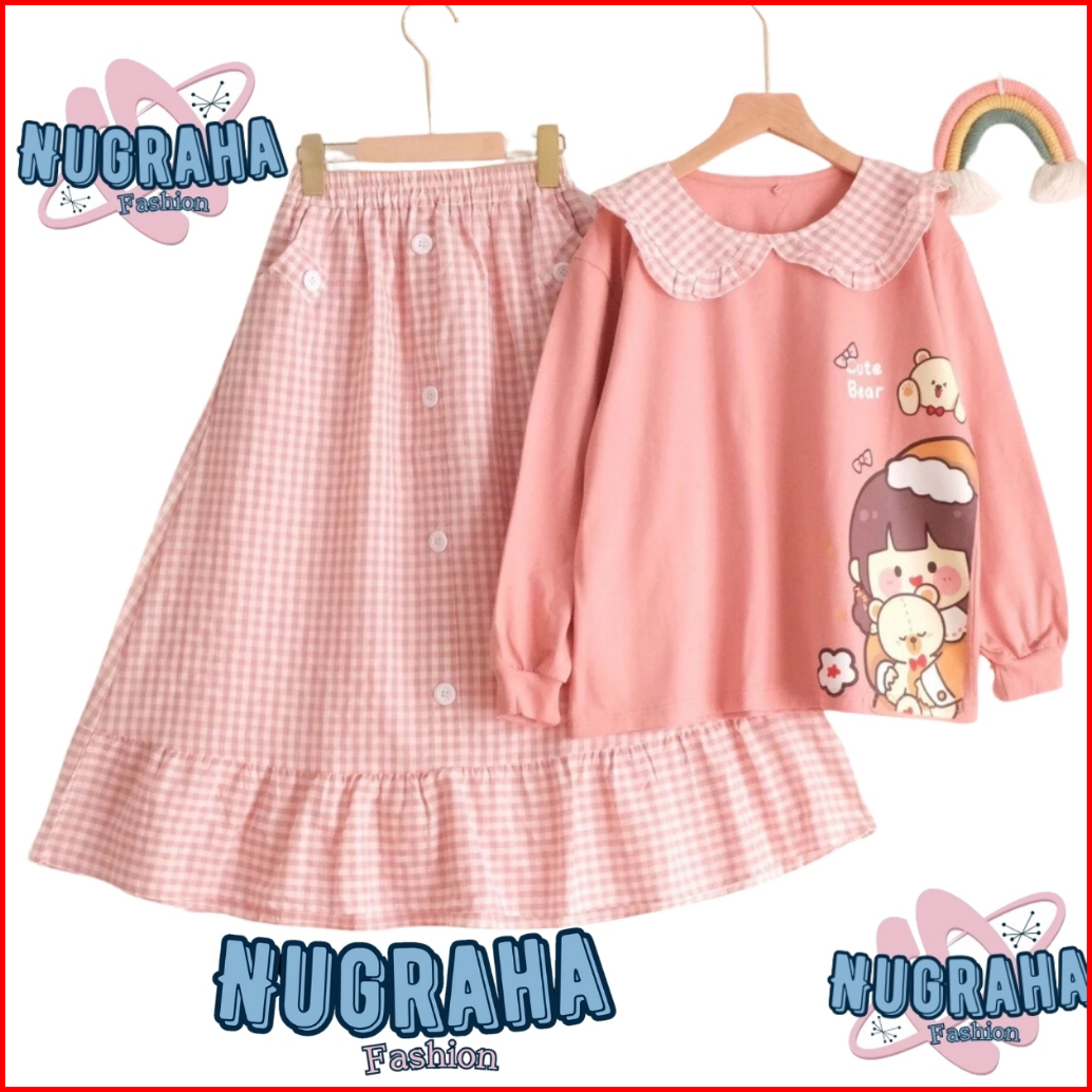 Nugraha.fashion Inka Kids Setelan Rok Anak Sablon Terlaris Bahan Crinkle Mix Katun Usia 3-10 Thn