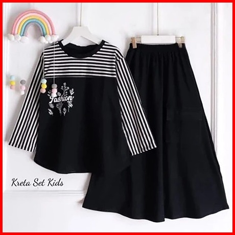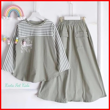 Nugraha.fashion Kreta Kids Setelan Rok Anak Terlaris Bahan Crinkle Mix Katun Salur Usia 3-10 Thn