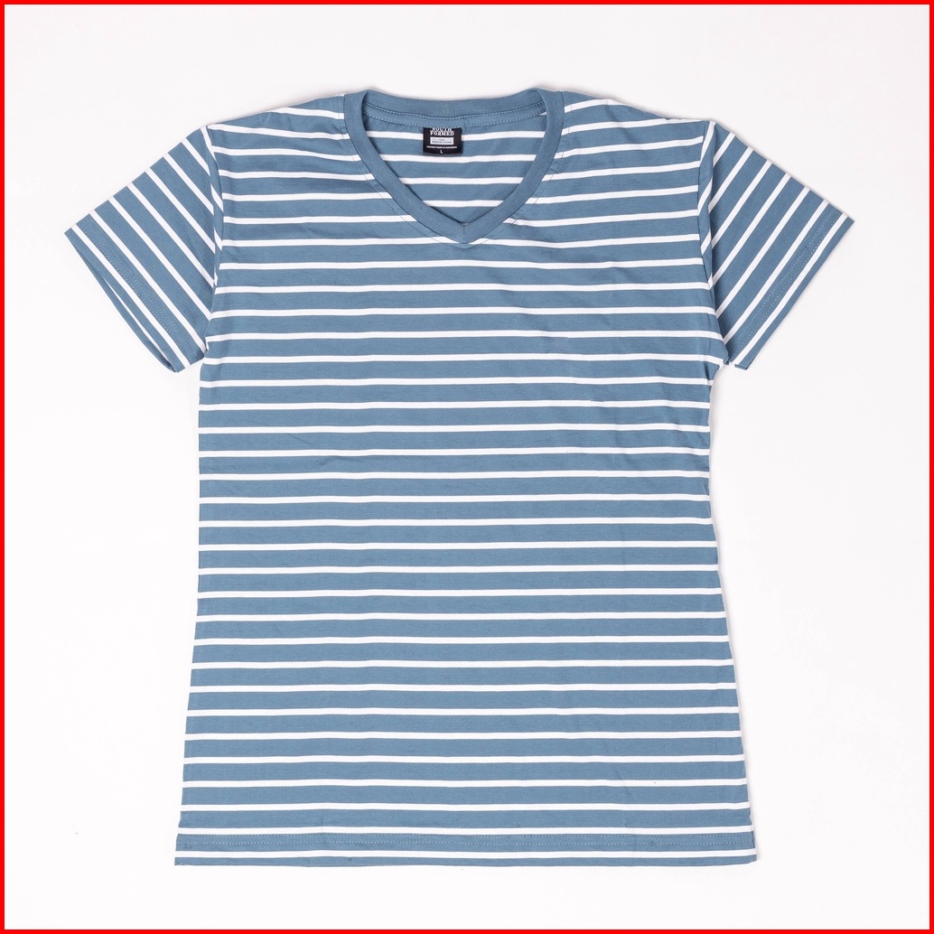 Sf V Neck Stripes Blue Marinir Kaos Katun Stripe Kaos Salur Katun Premium South Formed