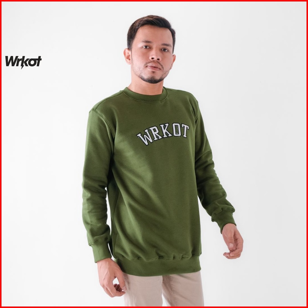 Workout Streetwear Sweater Crewneck Original Workout Bordir Flanel Putih