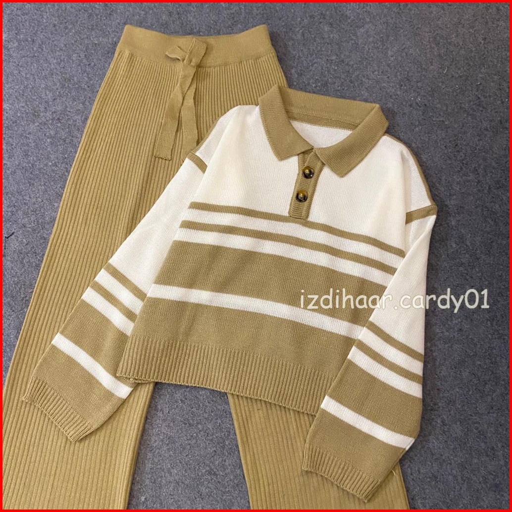 One Set Kulot Kanya Blouse Rajut Garis-garis