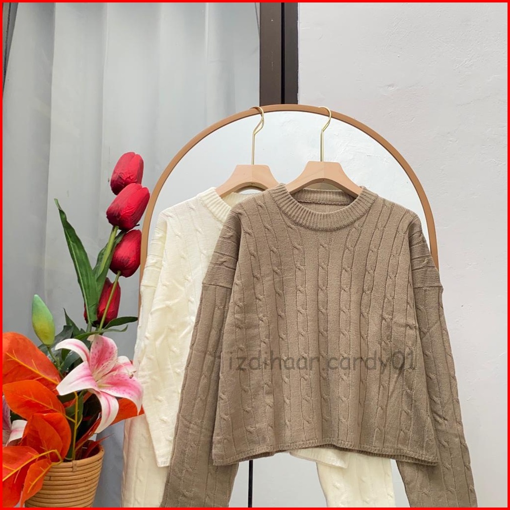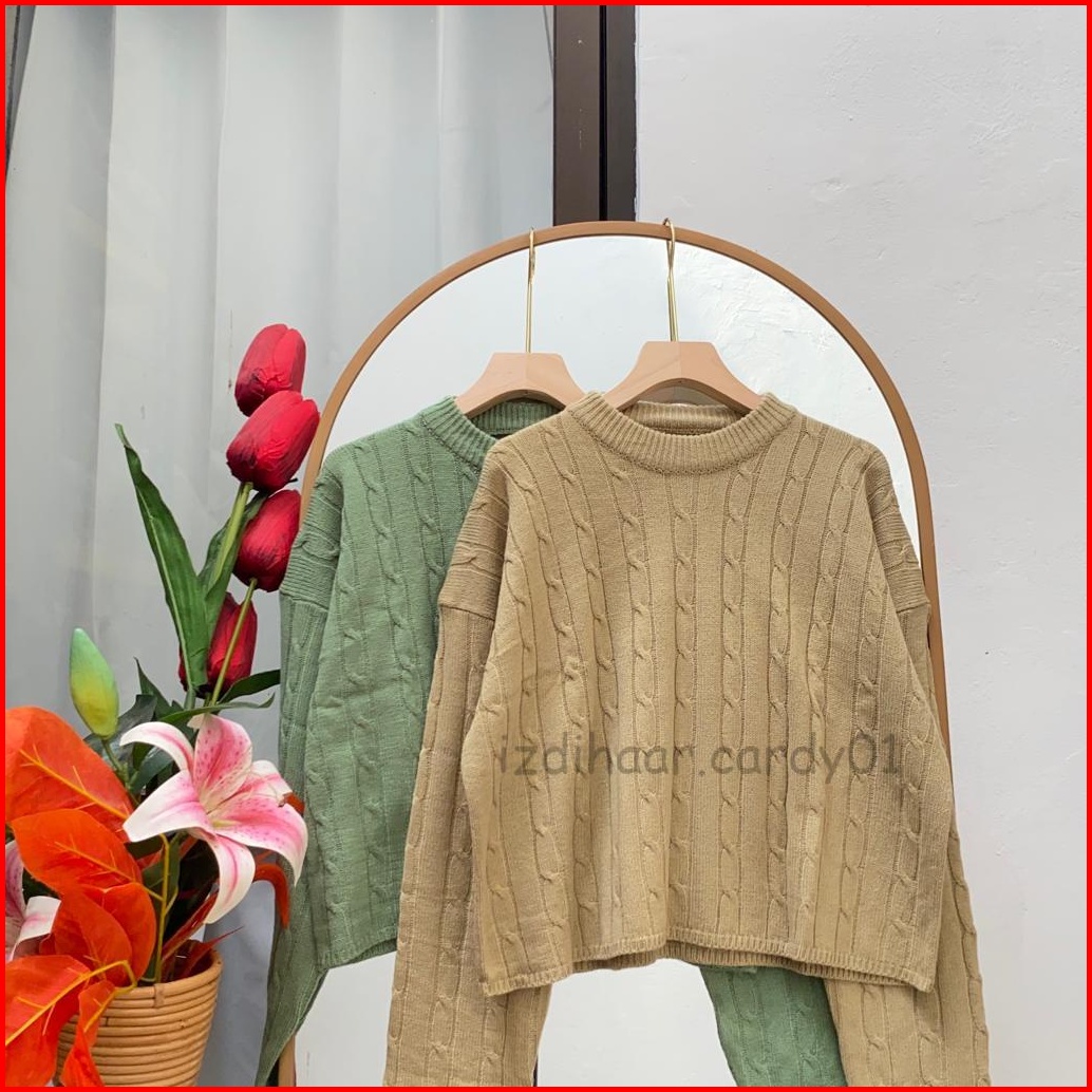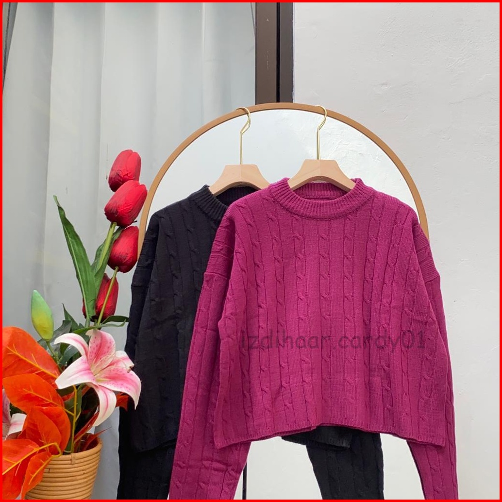 Ravena Crop Full Cable Terbaru Rajut Branded