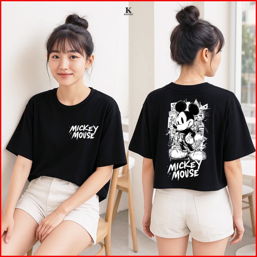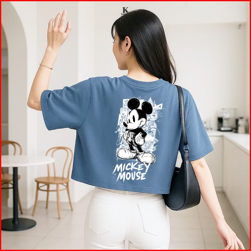 Kioteeshop Baju Crop Top Atasan Kaos Oversize Cewek Mickey Mkbw