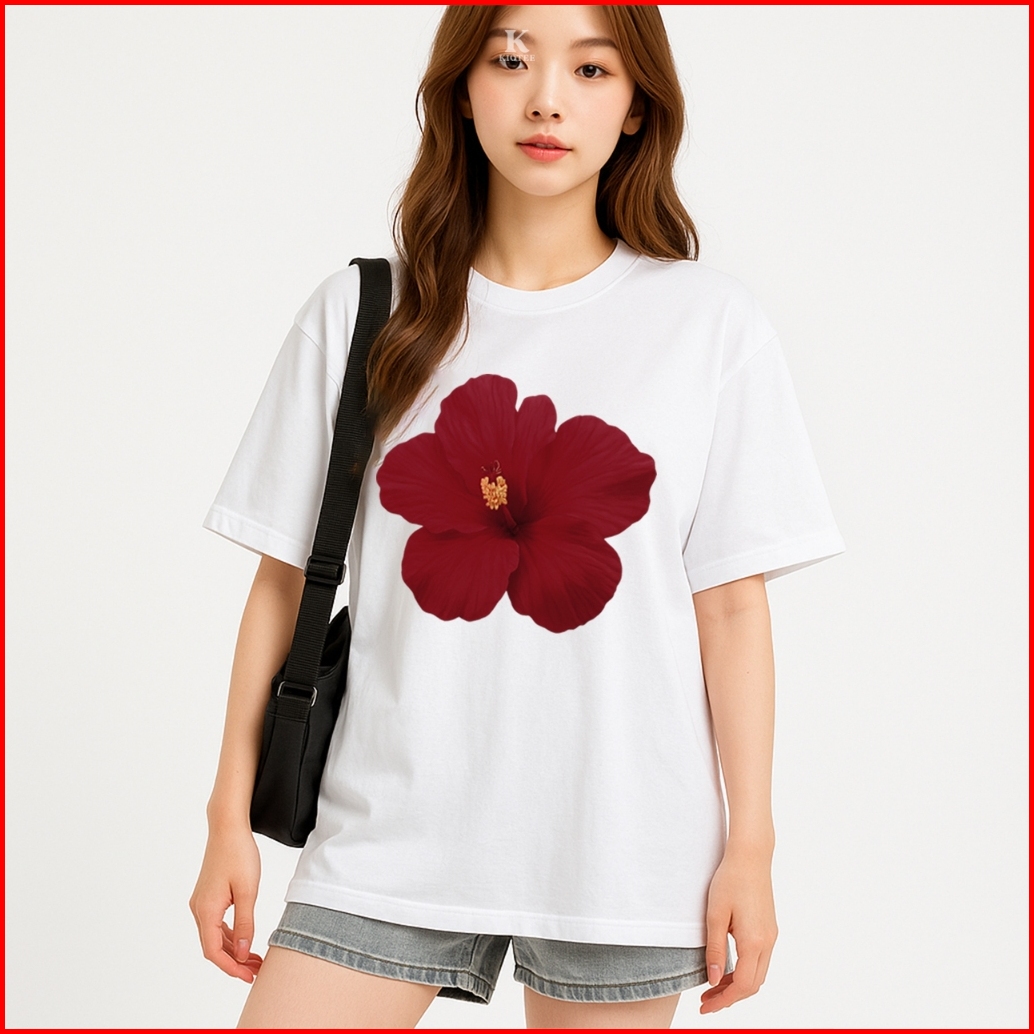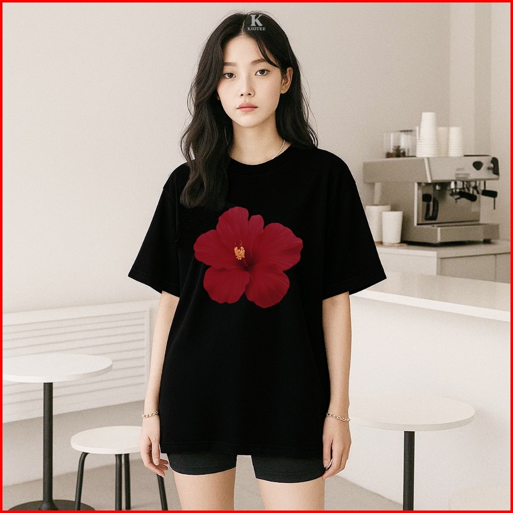 Kioteeshop Kaos Crop Top Oversize Kekinian Korean Style Katun Combed Motif Bunga