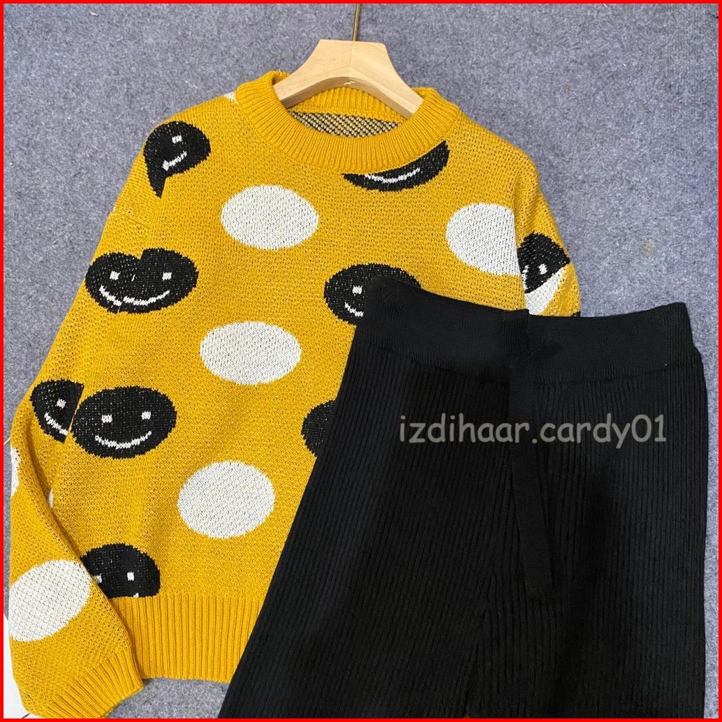 One Set Kulot Rajut Ayunda Sweater Smile Celana Sweater