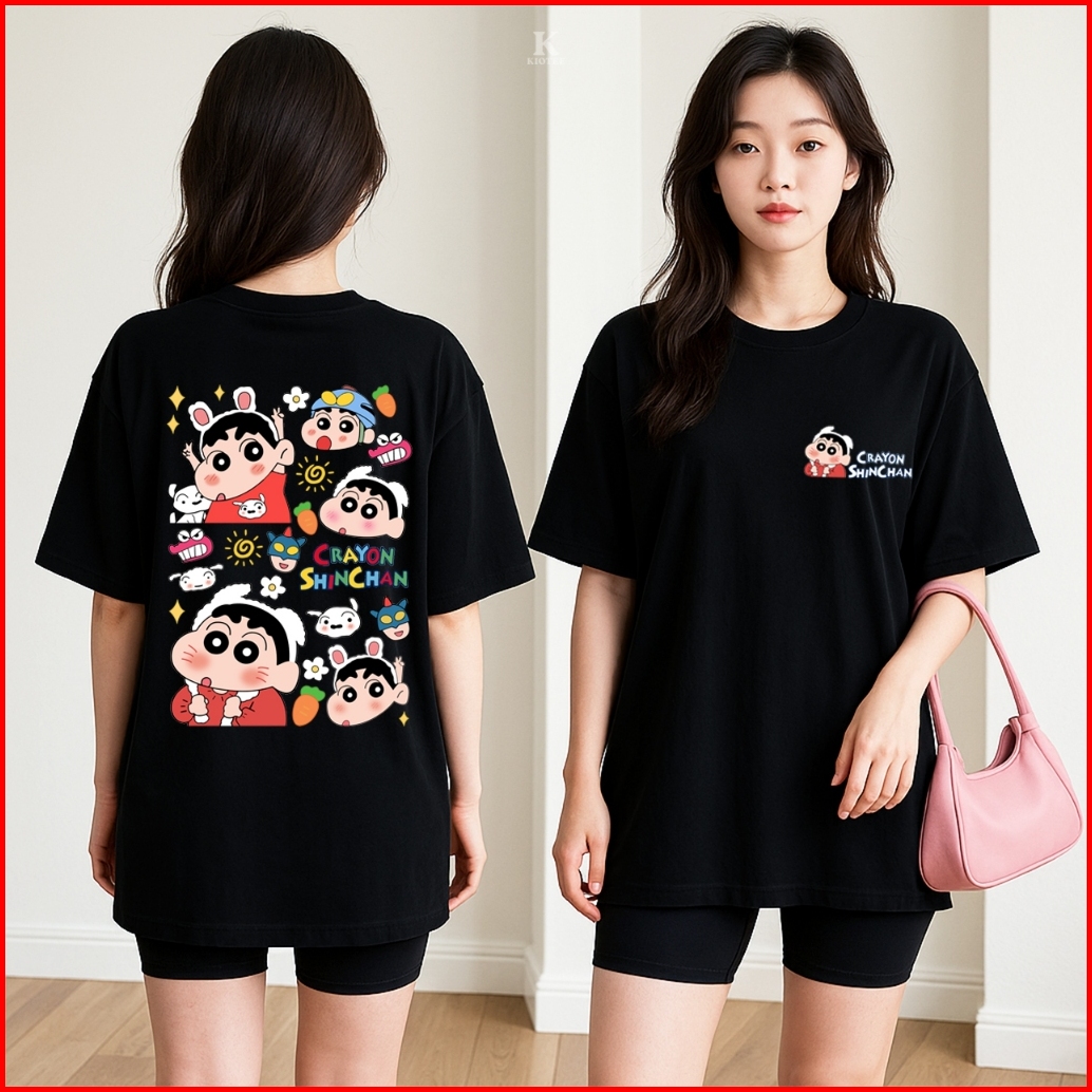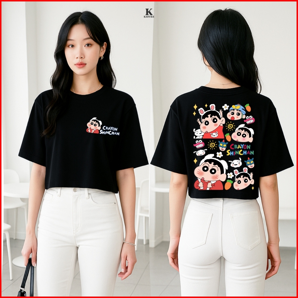 Kioteeshop Kaos Crop Top Oversize Baju Crop Top Kaos Oversized Cewek Cowok Wanita Shinchan