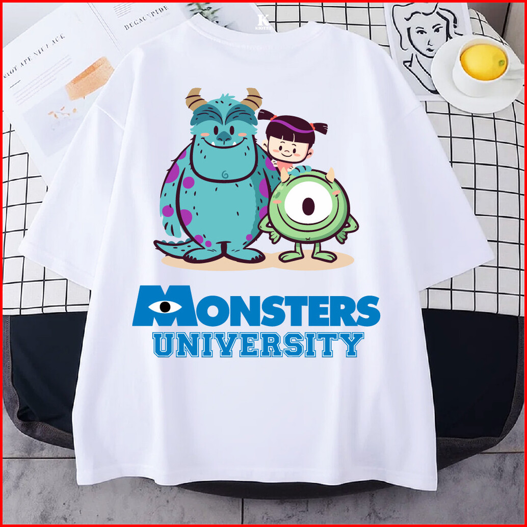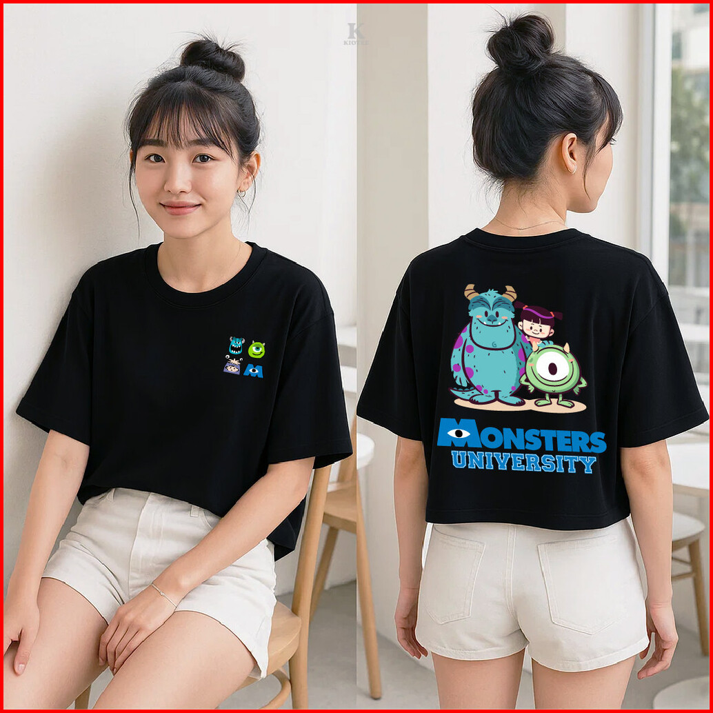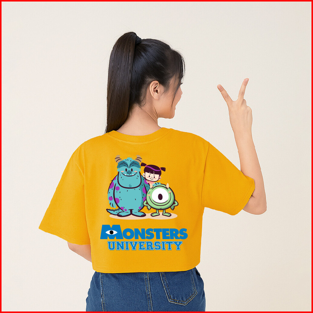 Kioteeshop Kaos Lengan Pendek Baju Crop Top Bahan Katun Oversize Motif Monsterinc