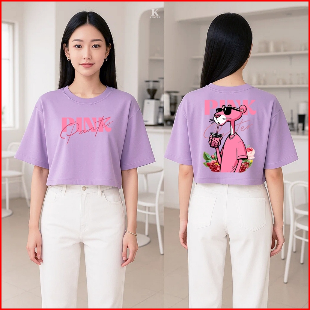 Kioteeshop Kaos Crop Top Oversize Cewek Kekinian Atasan Lengan Pendek Panther