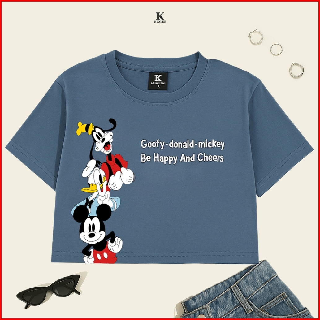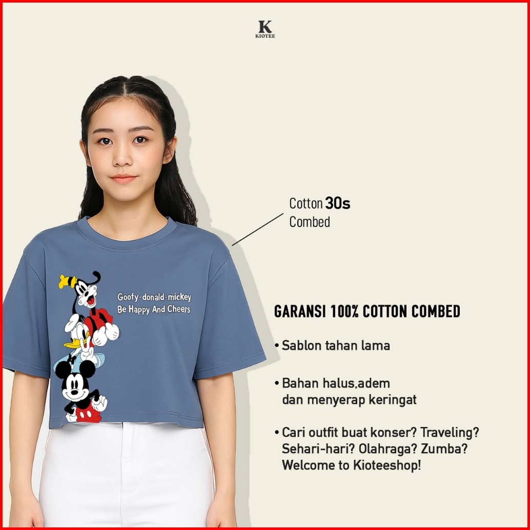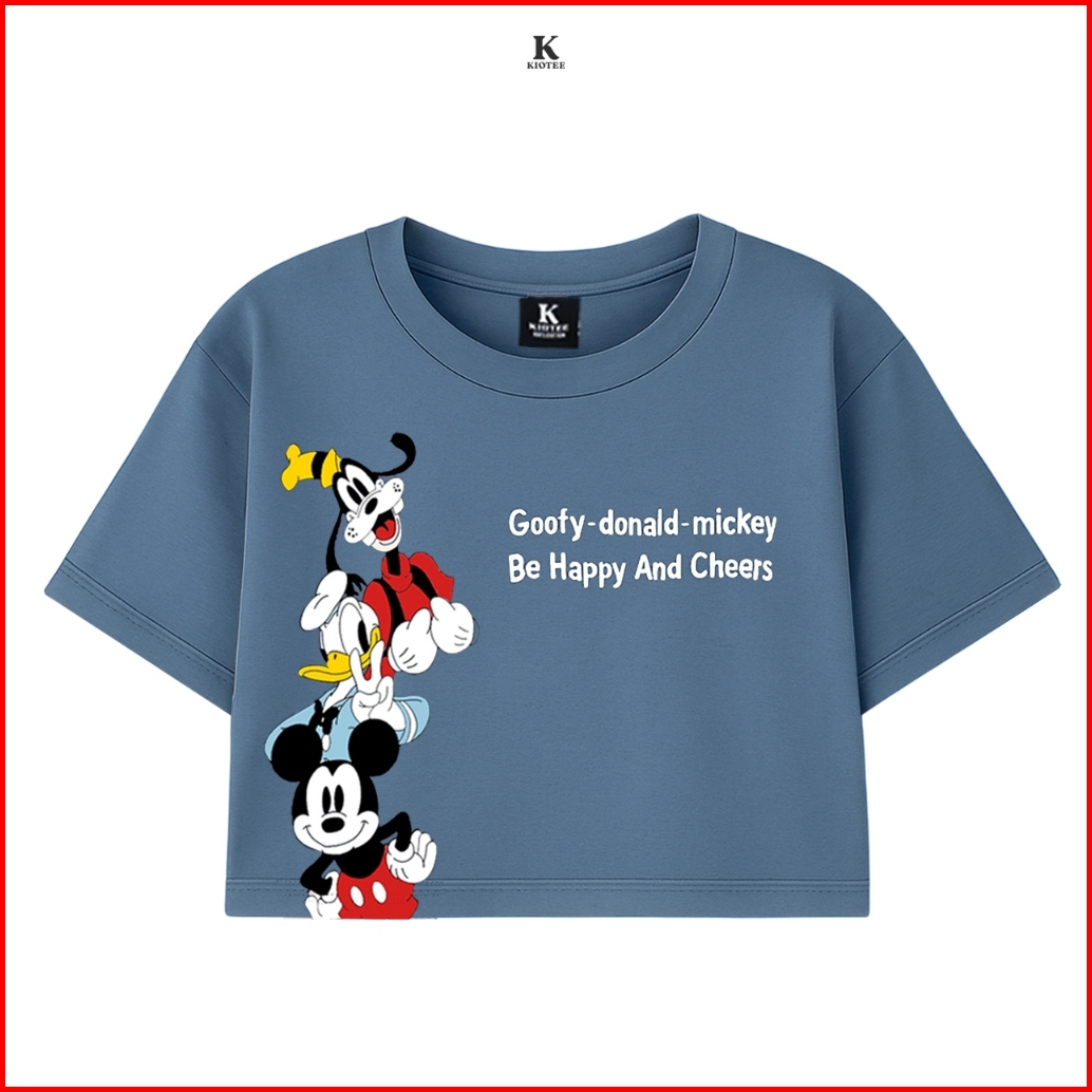 Kioteeshop Kaos Crop Top Oversize Wanita Mickey Donald Goofy