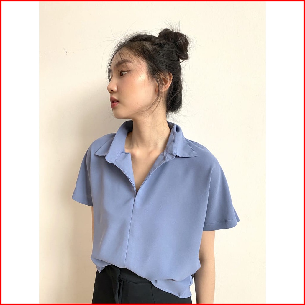 Kyuto Basic Top Lengan Pendek - Blouse Korean Wanita-blouse Wanita