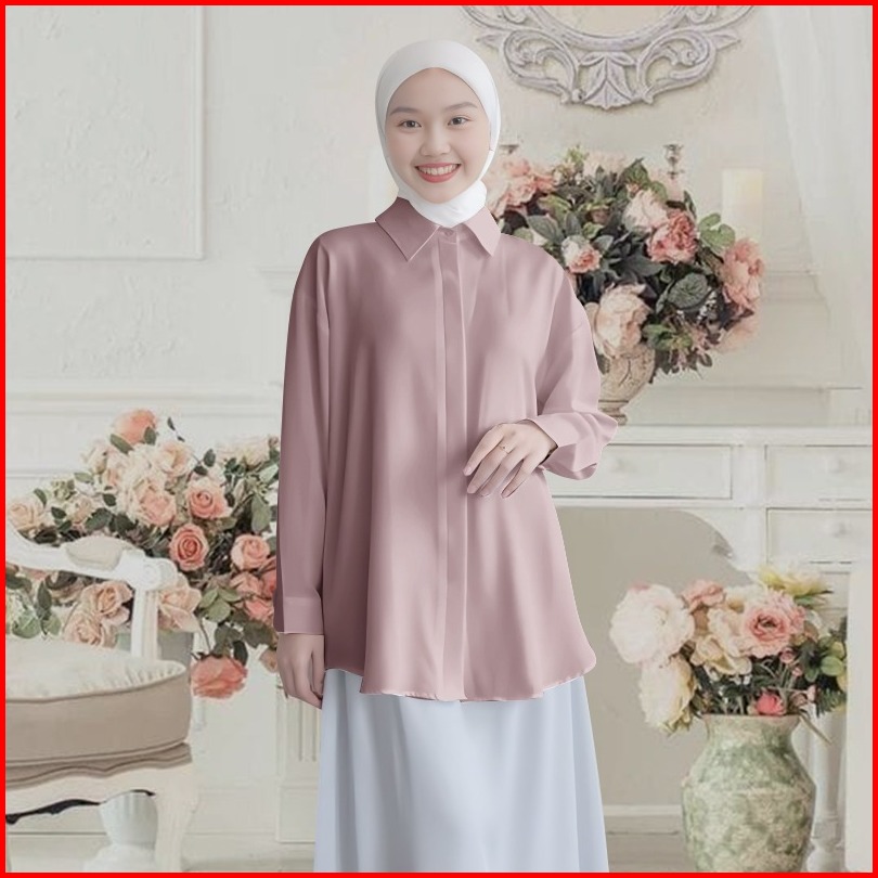 Mj Style Davika Top Atasan Kemeja Oversize Wanita Muslim Kemeja Putih Wanita Lengan Panjang