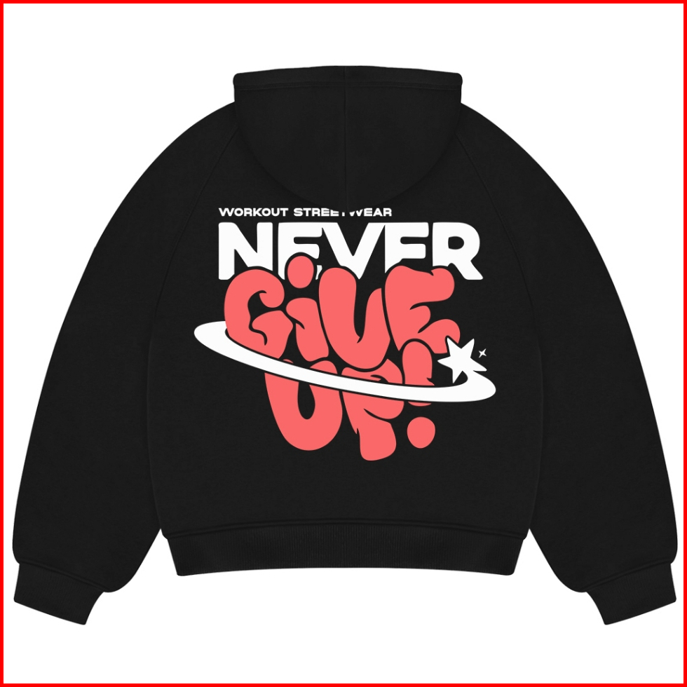 Workout Streetwear - Hoodie Boxy Zipper Basic Never Give Up