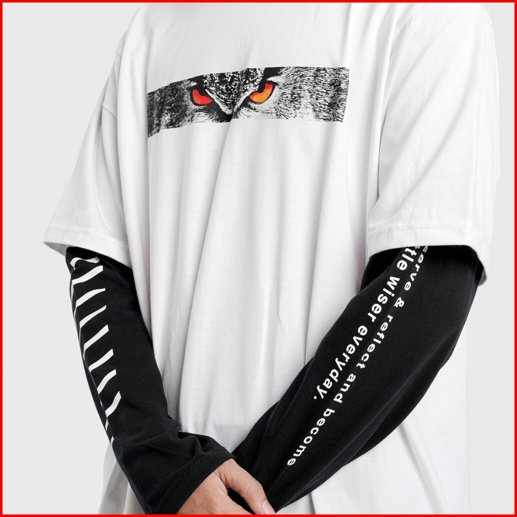 Mailo Oversized T-shirt Kaos Double Sleeve White Little Wiser