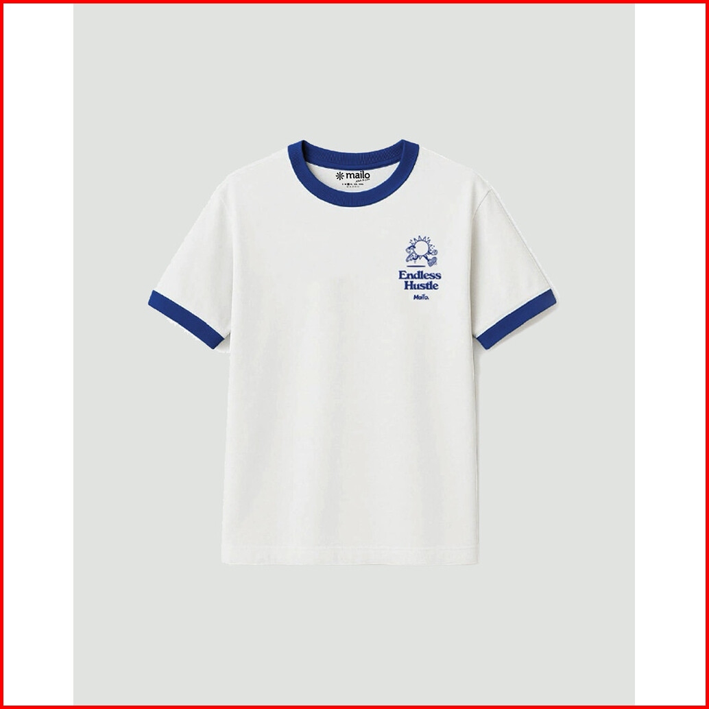 Mailo - Regular Ringer Tee Hustle White Blue