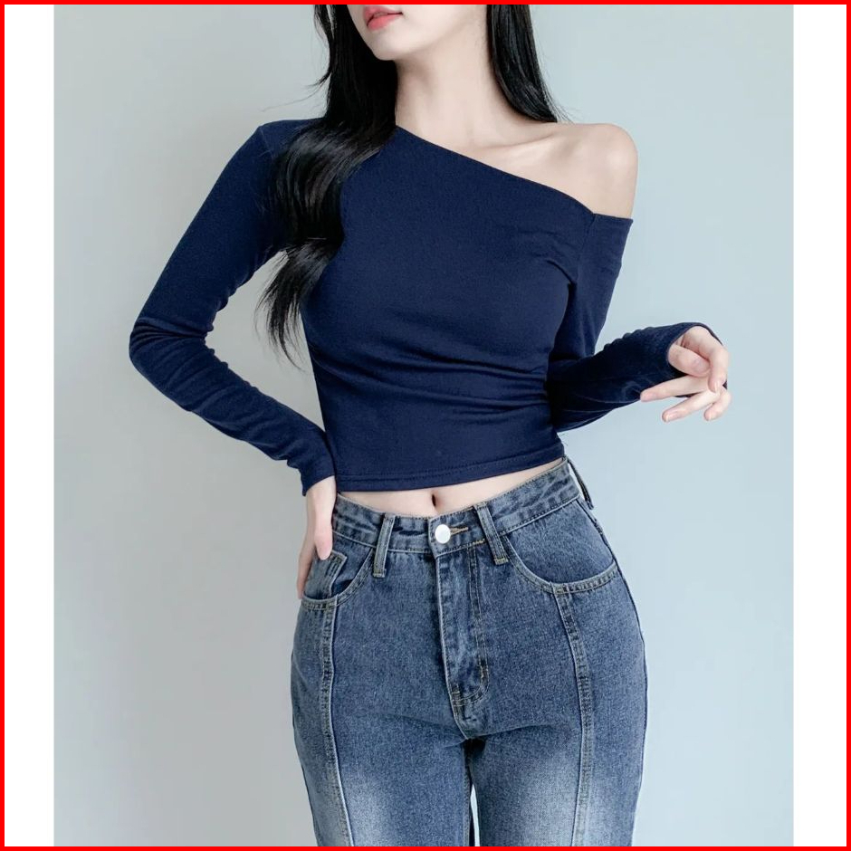 Atasan Crop One Shoulder Wanita - Crop Top Sabrina Off Shoulder Slim Fitting Lengan Panjang 6066