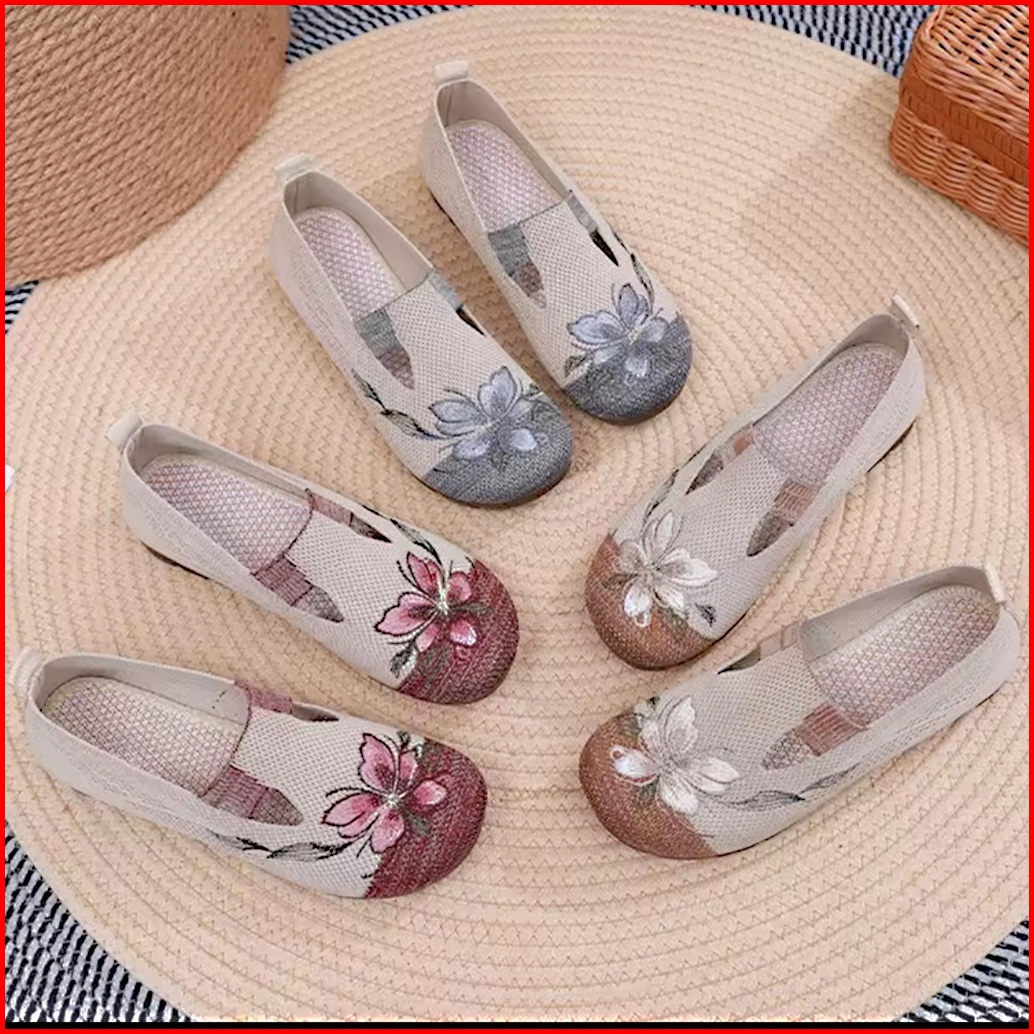 Dinasty Sepatu Slip On Wanita Flat Shoes Rajut Karet - L05