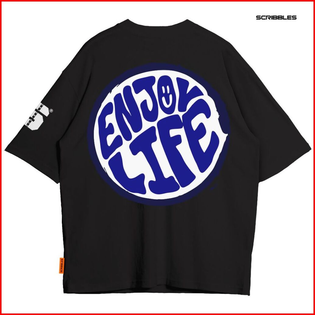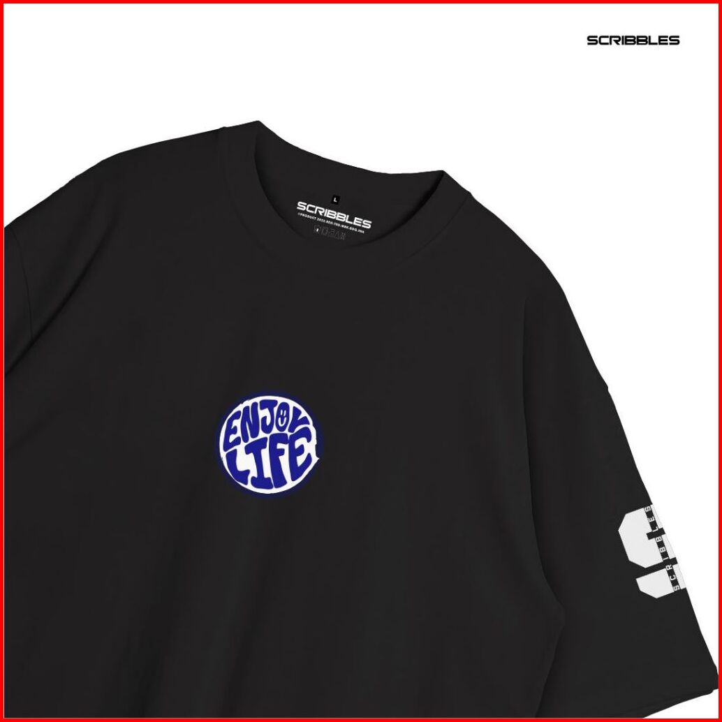Kaos Workout Stretwear X Scribbles Baju Oversize Original Combed 24s Enjoy Life Hitam