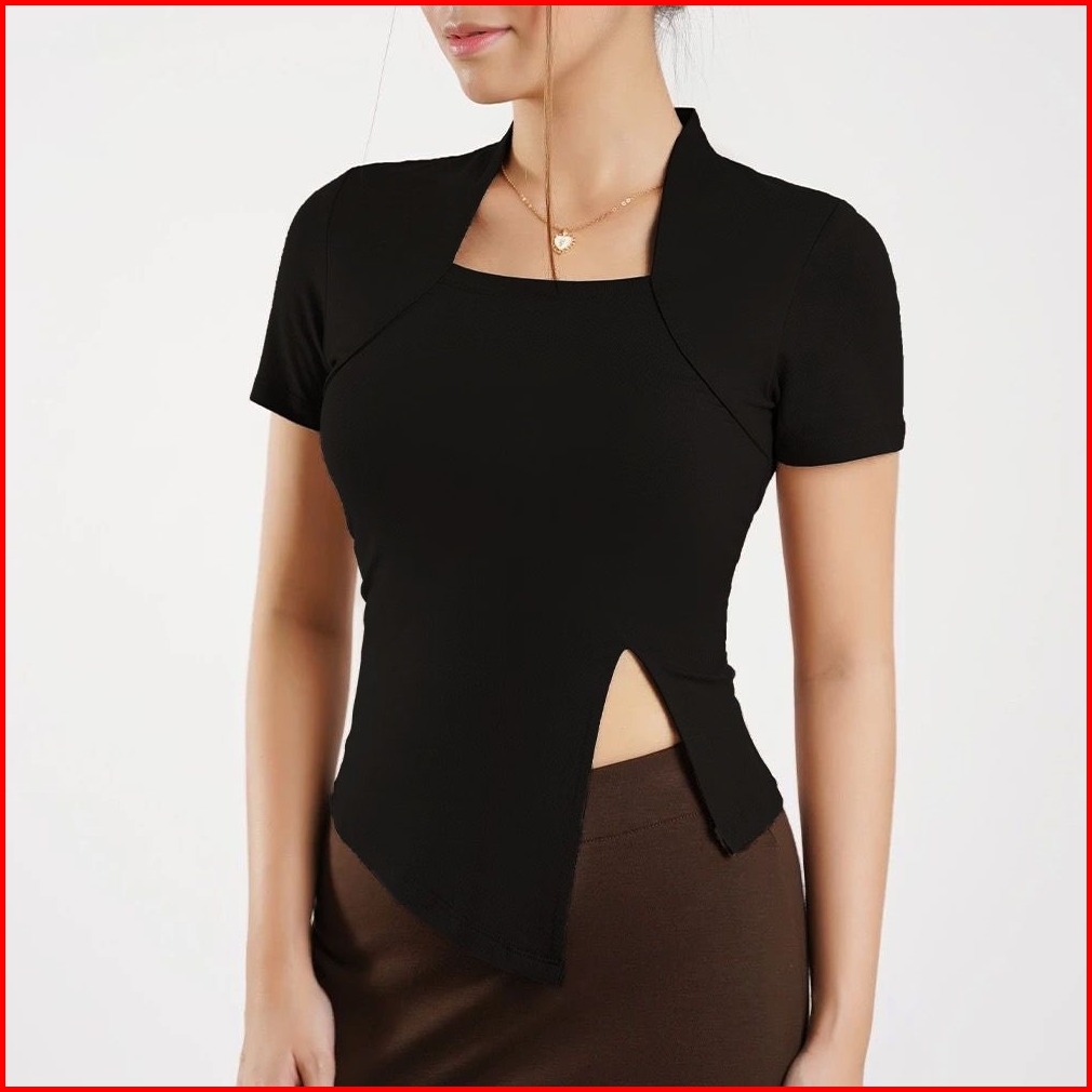 Kaos Wanita Lengan Pendek Square Neck Variasi Belah Samping - Fashion Korean Top Terbaru 6034