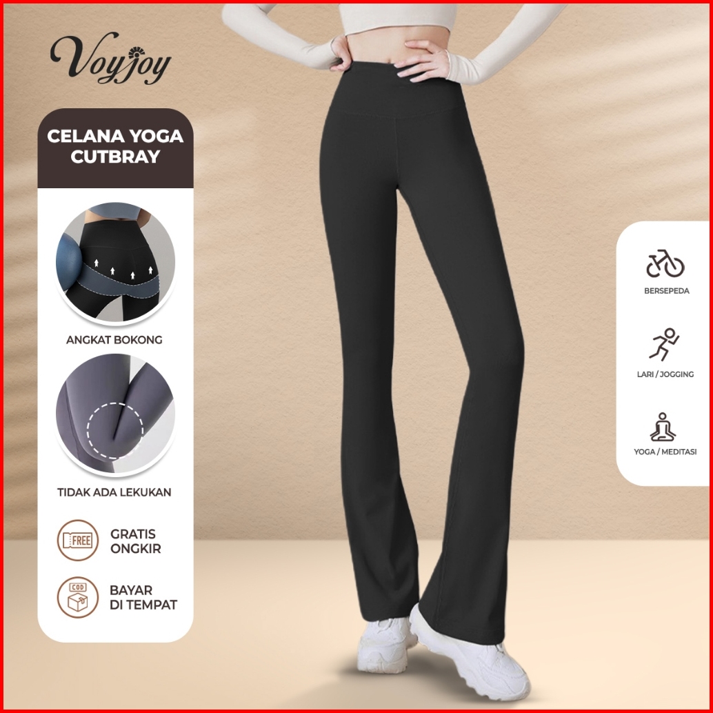 Voyjoy Celana Olahraga Wanita Legging Yoga Pilates Sport Celana Cutbray Gym High Waist Pants
