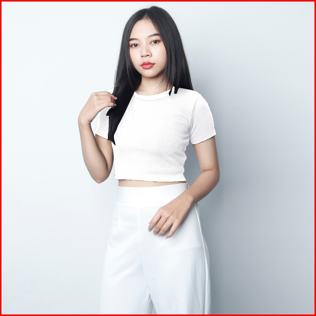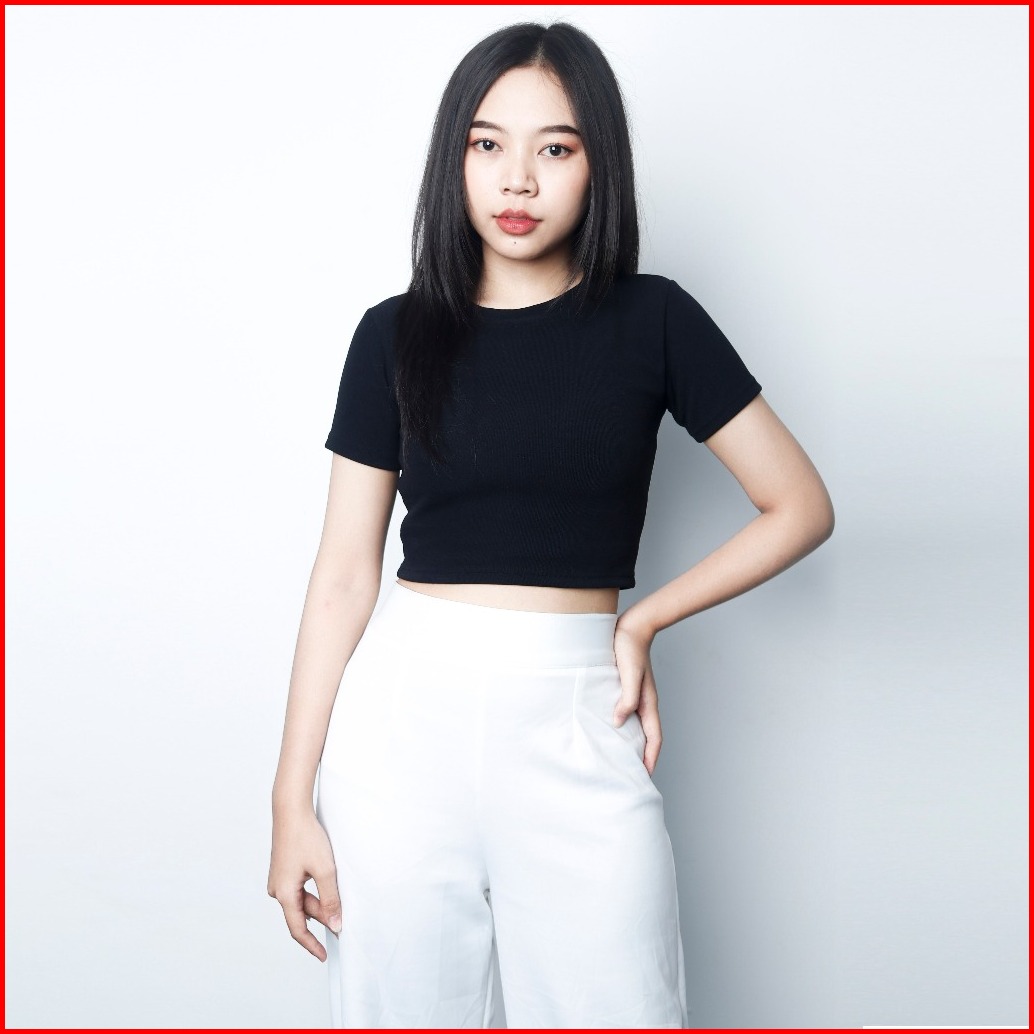 Oneck Top - Atasan Wanita Bodyfit Bahan Knit Atasan Hitam Putih Bodyfit Lengan Pendek By Knara