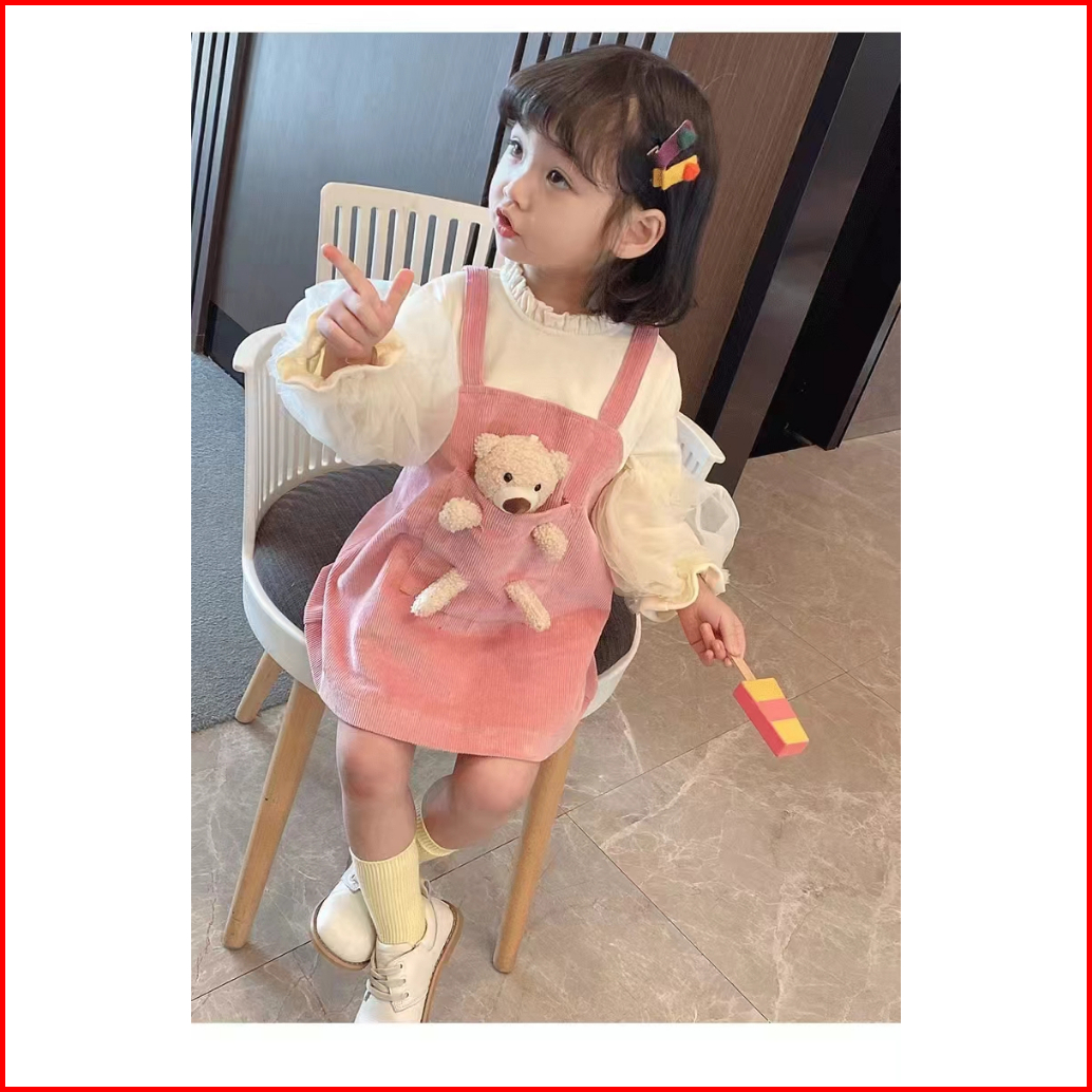 Dress Anak Perempuan Motif Bear 3d Dress Korea Anak Perempuan Usia 1-5th Gaun Rok Anak Cewek