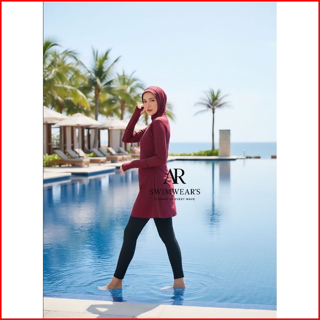 Baju Renang Muslimah Hijab Ar Swimwear Naura Premium Setelan Wanita Anti Uv Nyaman Elegan