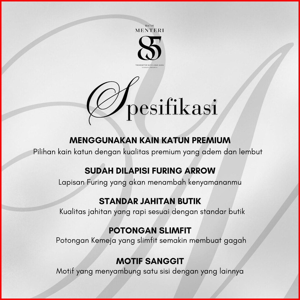 Kemeja Batik Menteri 85 Baju Batik Pria Motif Dewananda Modern Lengan Panjang Slim Fit Men85camp