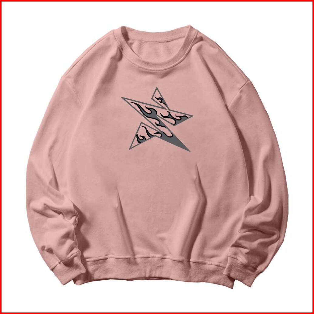Bunz Basic Sweater Crewneck Long Sleeve Star Fire Size M-xxl Pria Wanita