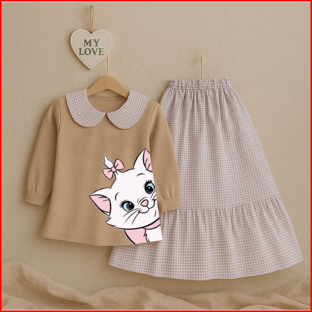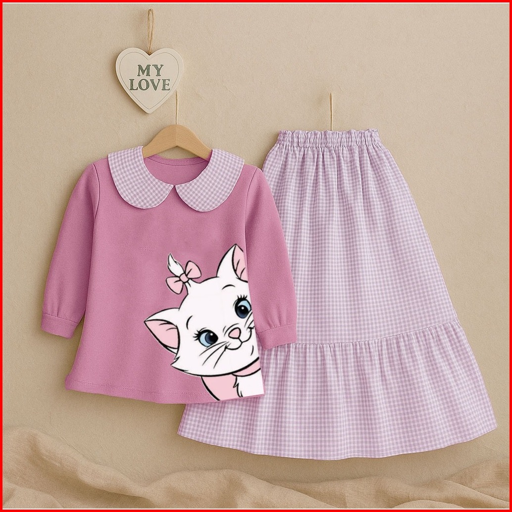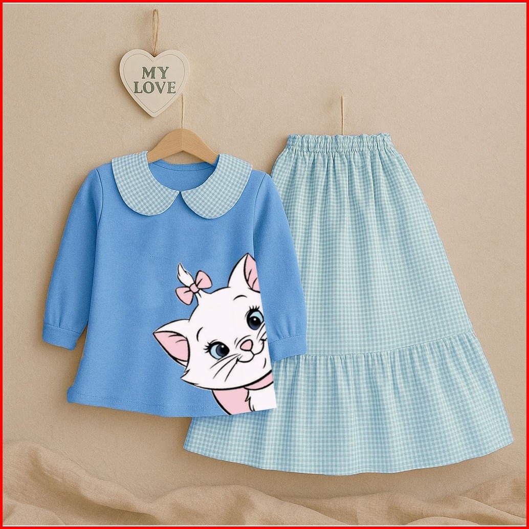Nugraha.fashion - Kitty Set Kids Setelan Baju Rok Anak Perempuan Lengan Panjang Usia 3-10 Tahun