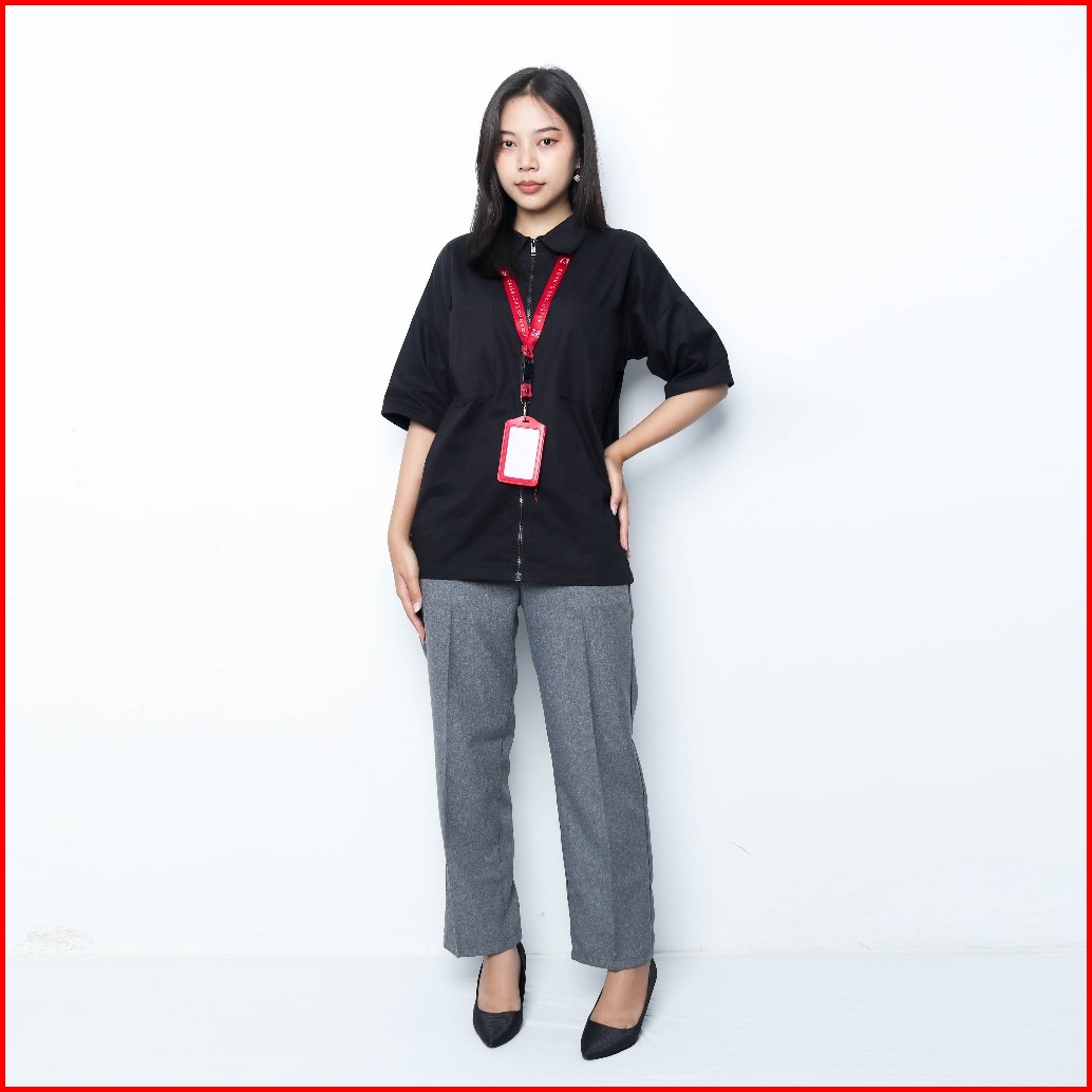 Kemeja Kerja Berkerah Lengan Panjang Pendek Seragam Kerja Saku Kanan Kiri Bahan Katun Oversize Long Zipper By Knara