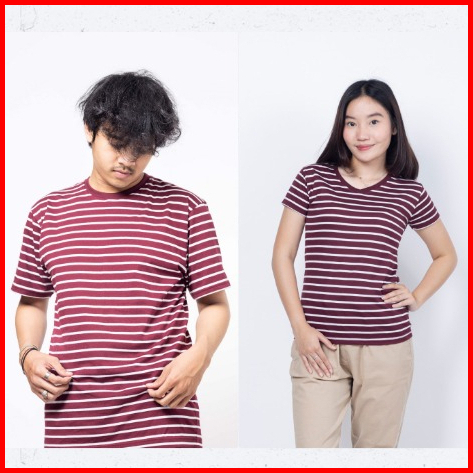 Sf V Neck Stripes Maroon Kaos Katun Stripe Kaos Salur Katun Premium South Formed