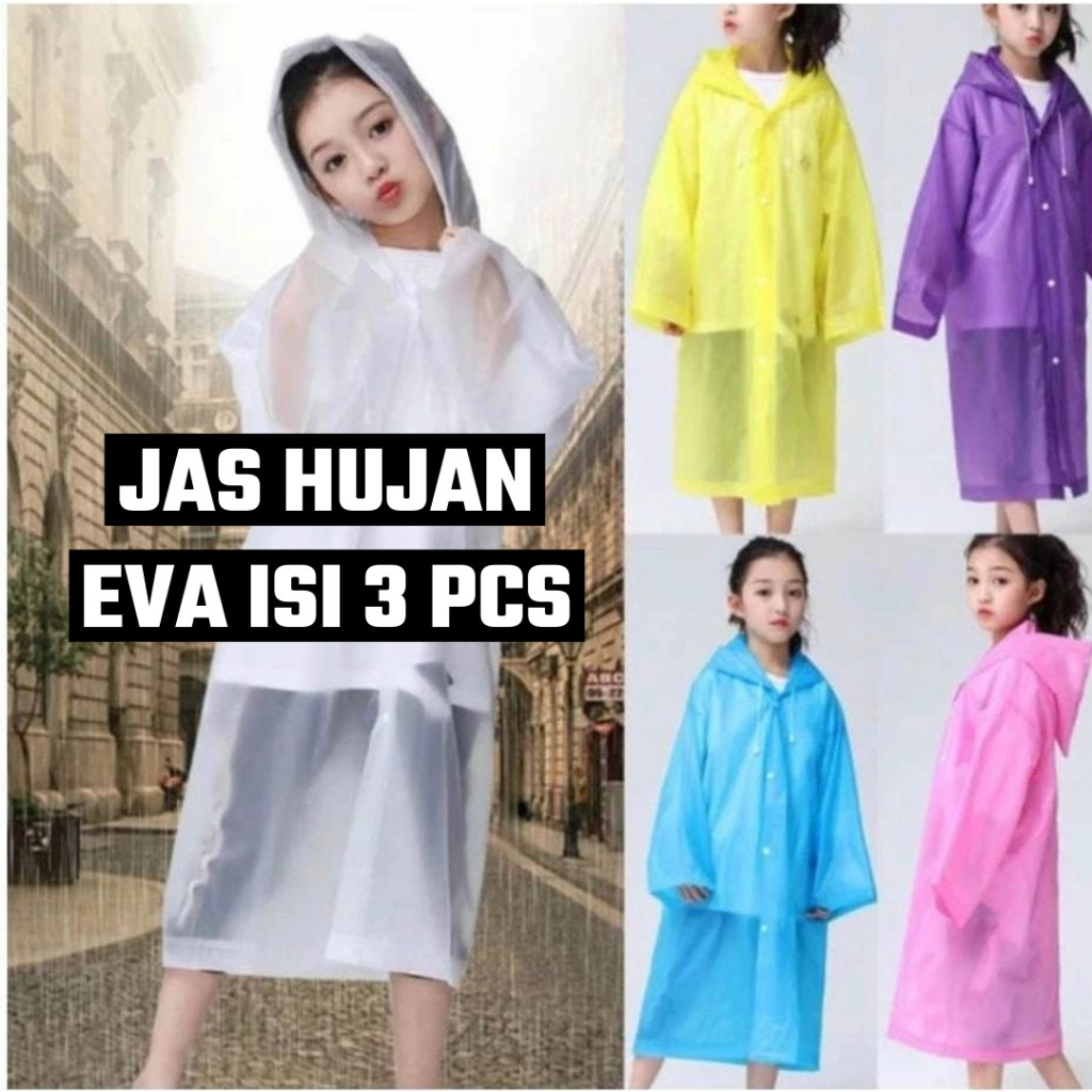 ISI 3 PCS Jas Hujan EVA Anak Tebal Jas Hujan Anak Poncho Mantel Hujan Semi Transparan